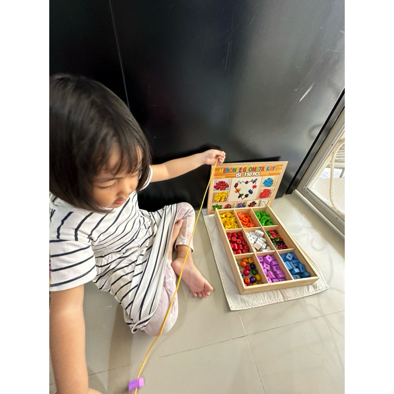Meronce edukatif kayu bentuk geometri 150pc