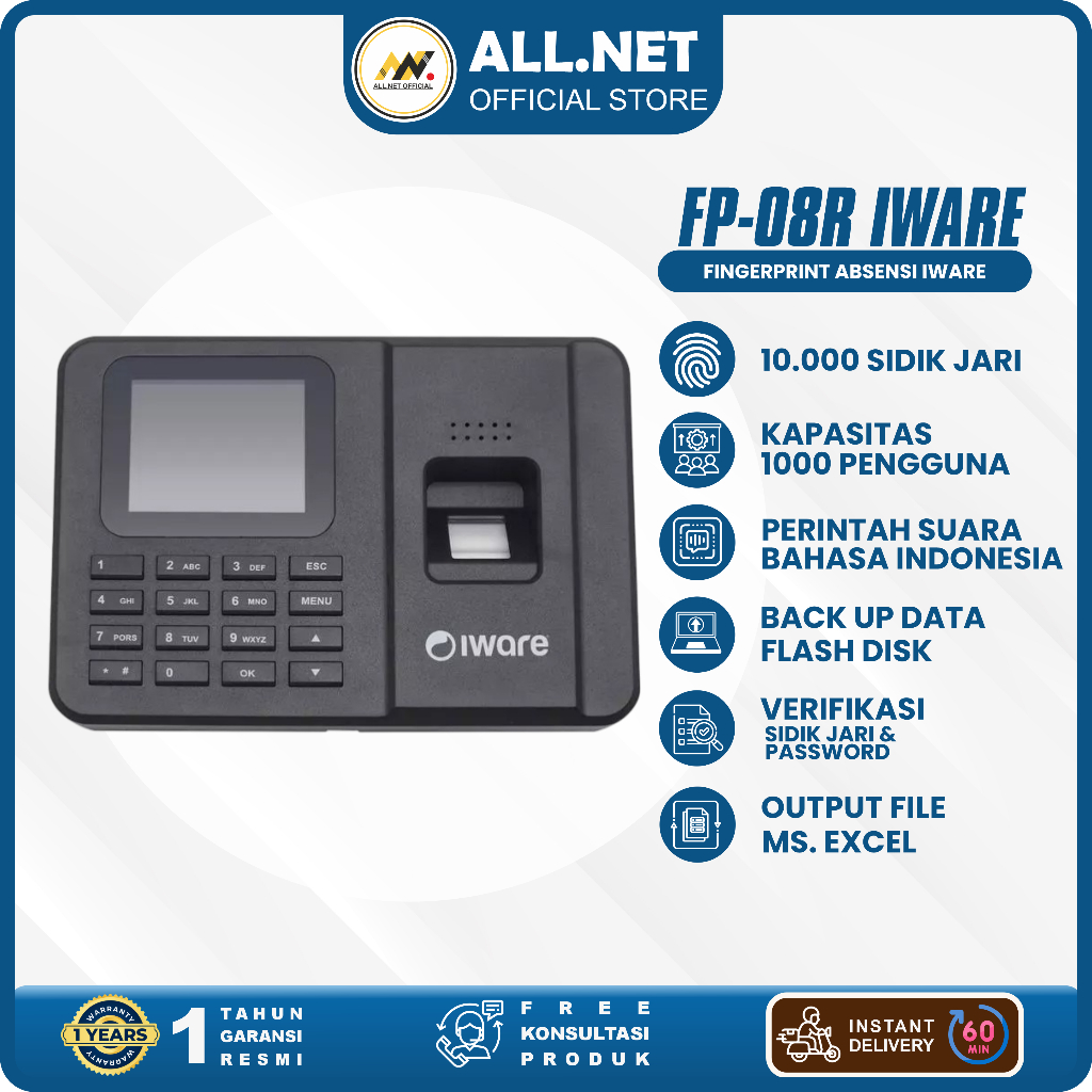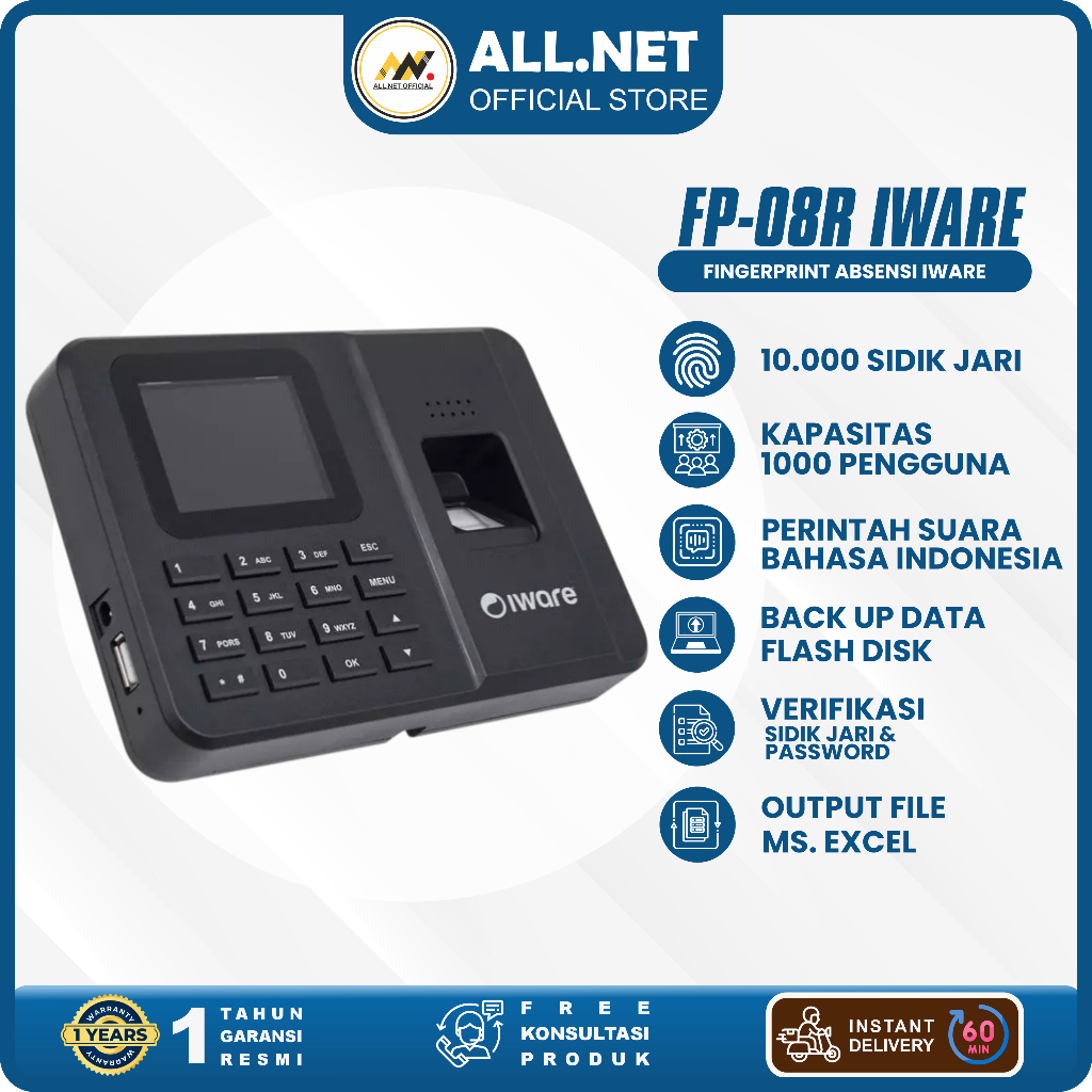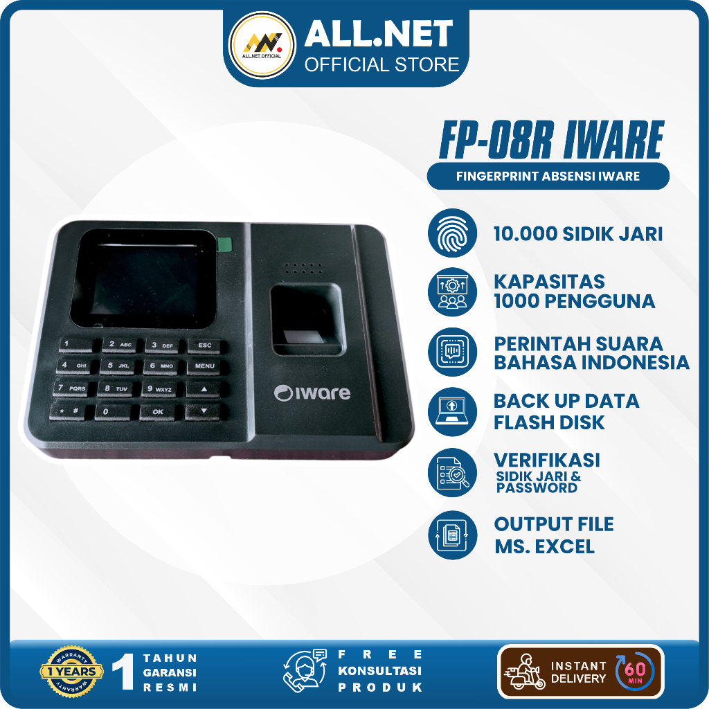 Mesin Absensi Fingerprint Attendance Alat Absensi Sidik Jari 1000 user Iware FO -8R EPPOS A3 A5