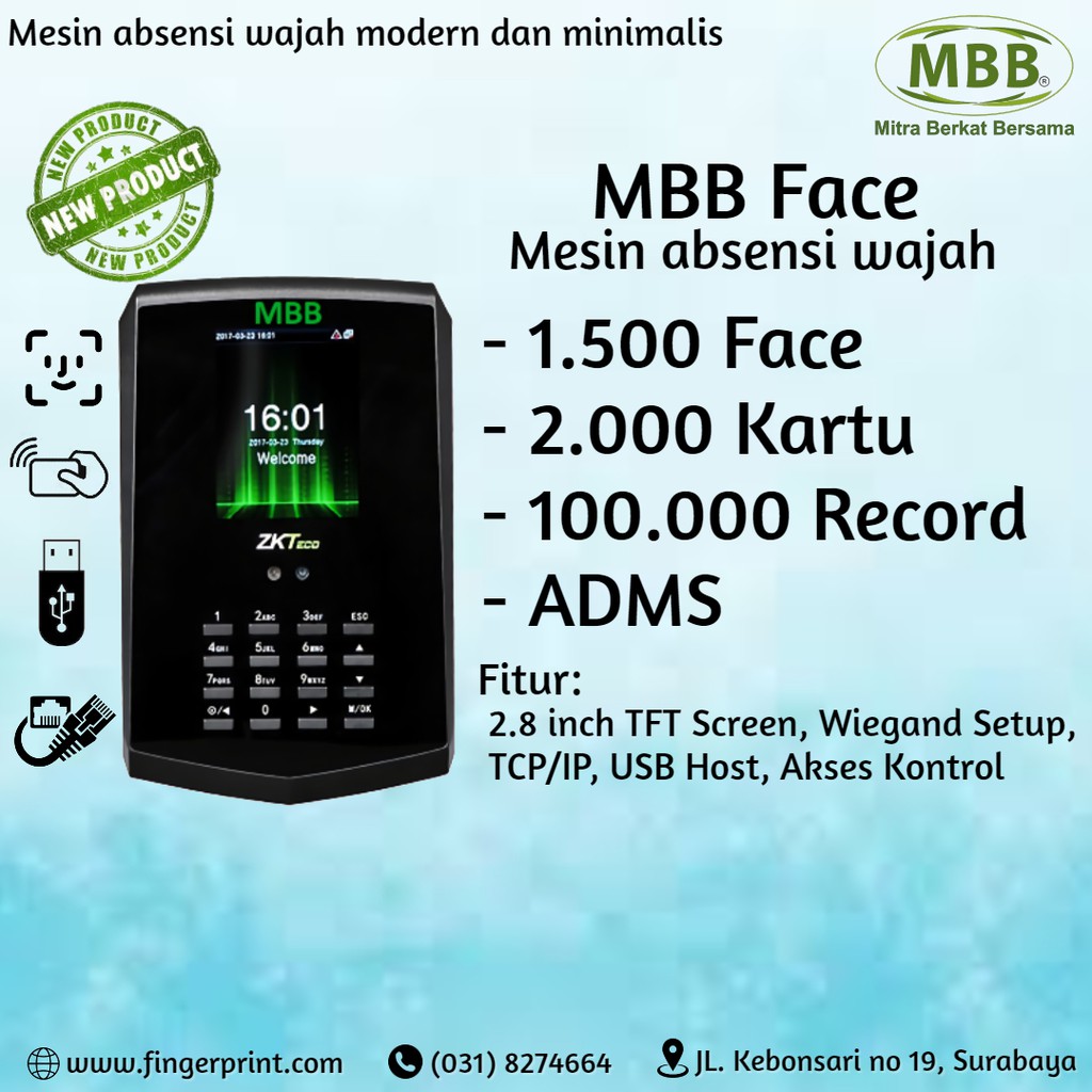 Mesin Absensi MBB FACE Absen Scan Wajah Support Akses Kontrol Pintu