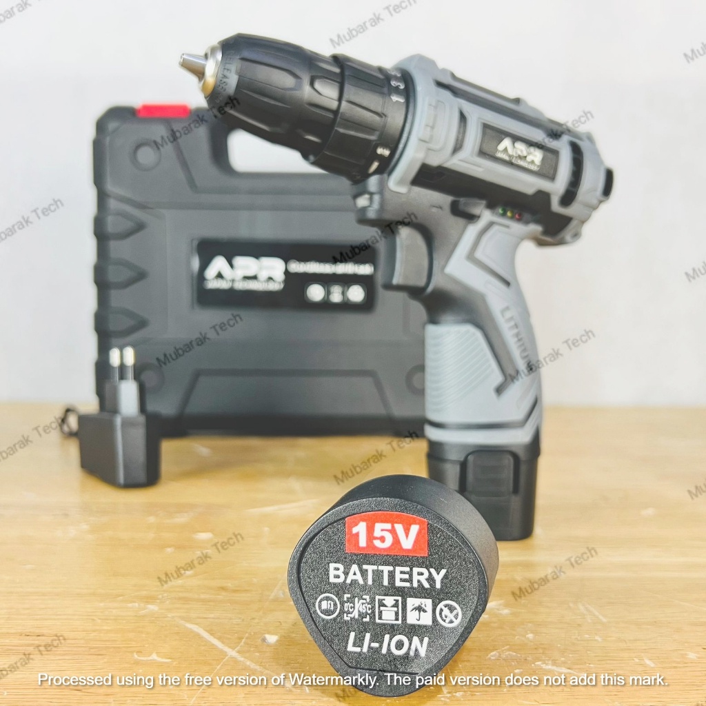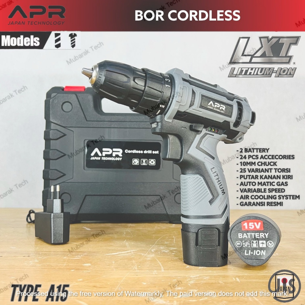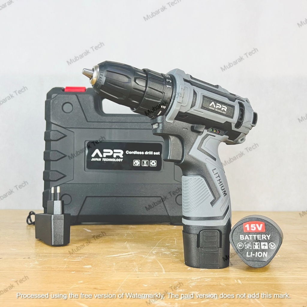 Mesin Bor BATERAI APR Japan Technology Tanpa Kabel Cordless 15v 10mm + Mata Bor Set