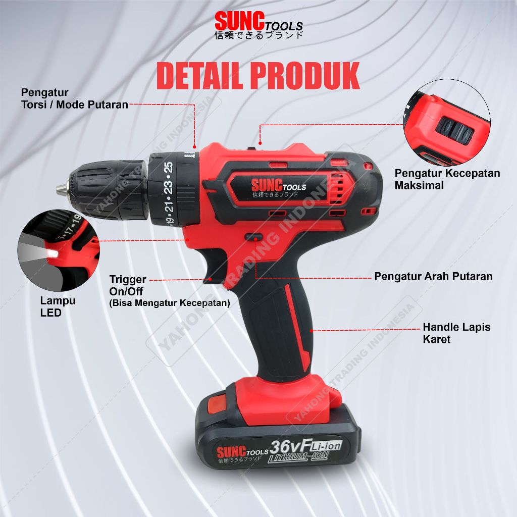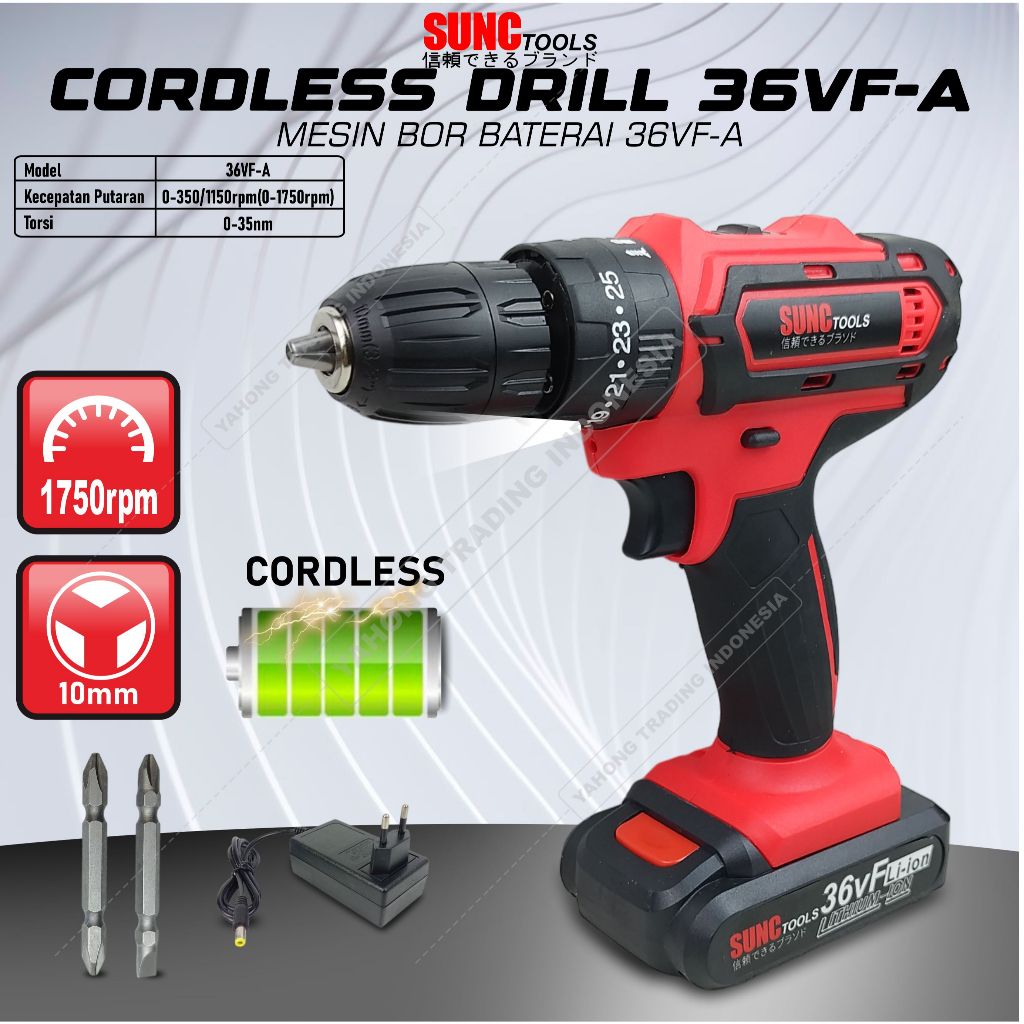 Mesin Bor Baterai Bor Batere Cordless Drill 36v 36VF SUNC TOOLS