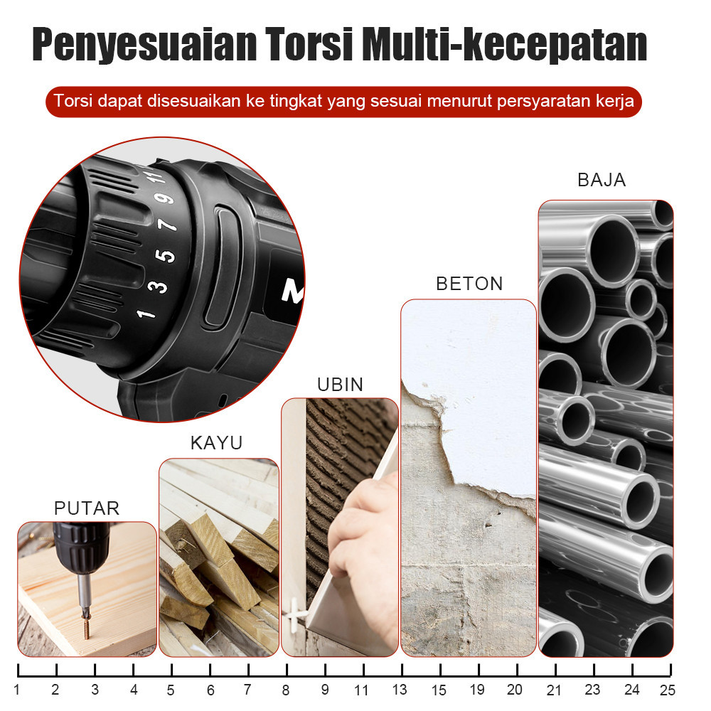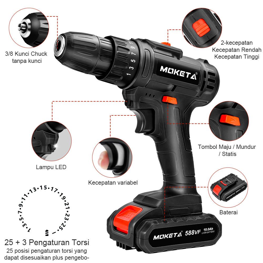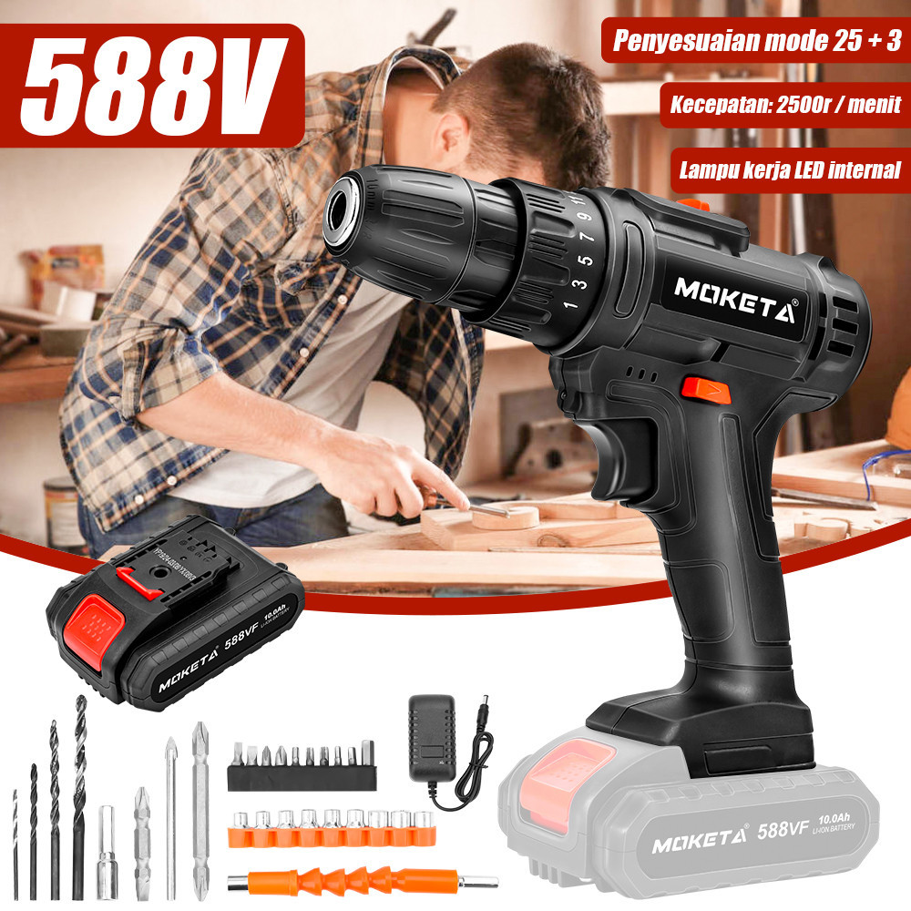 Mesin Bor Baterai Tangan 588VF Mesin bor baterai bor 25+3 bor Impact listrik /bor cordless murah /Bor Listrik Set/3Mode-bor Impact obeng/bor tembok besi kayu Bisa bolak-balik