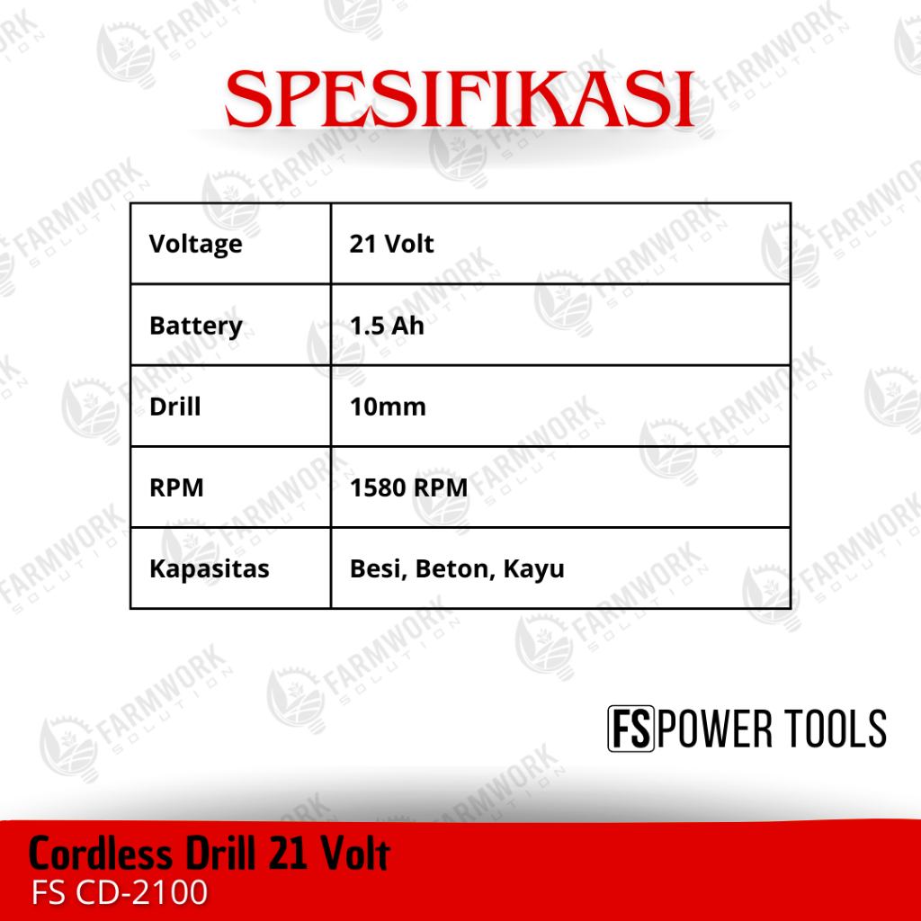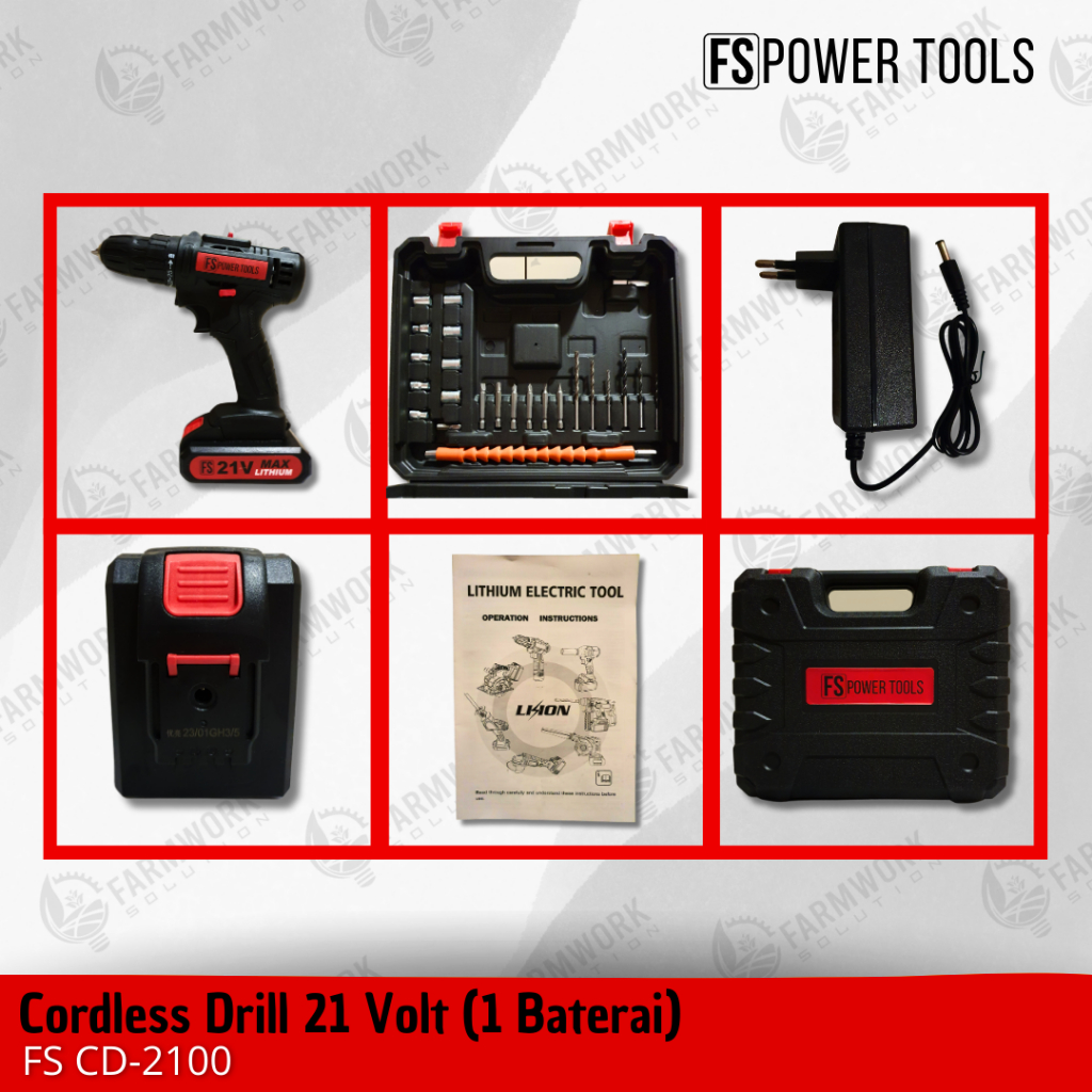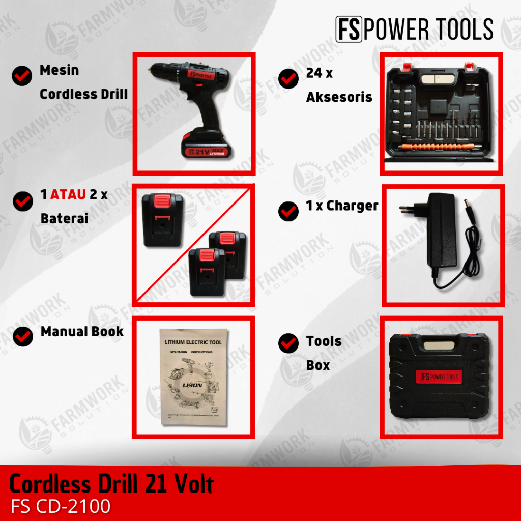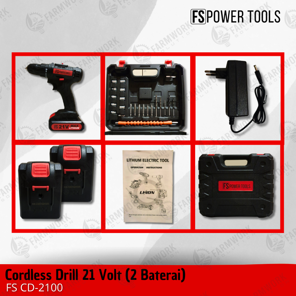 Mesin Bor Baterai Tangan / Bor Cordless / Cordless Drill Battery FS CD-2100 Full Set