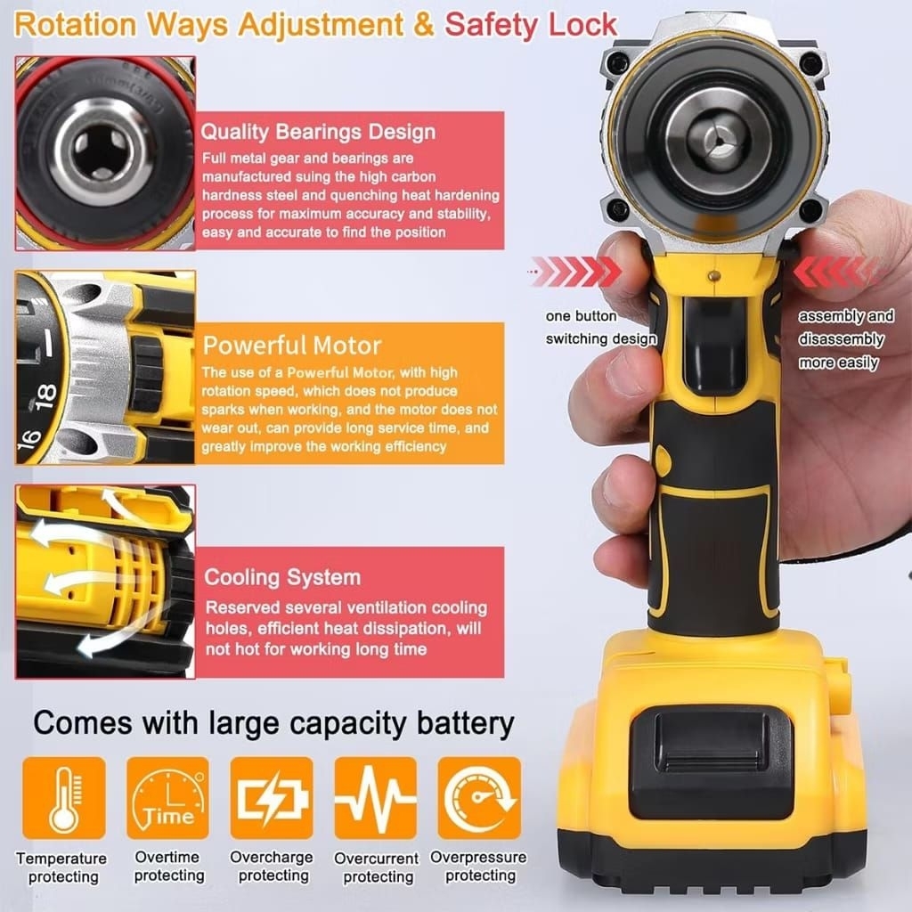 JLD Mesin Bor Baterai ONLY 3MODE Pengeburan Bor Tangan Cordless Drill Battery Bor Cordless Power 48V Dengan 2 Mode kecepatan