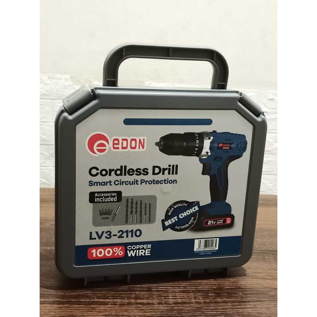 Mesin Bor CAS Cordless Baterai 21V Edon LV3-2110 Koper (2 Battery) / Bor Hujia