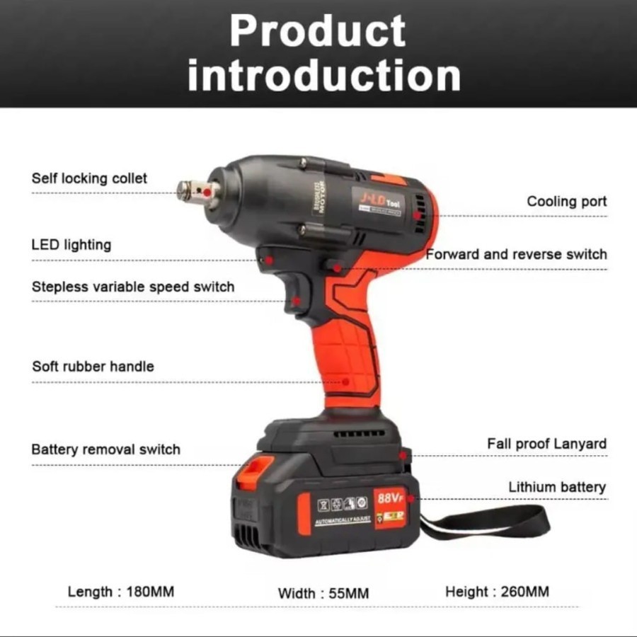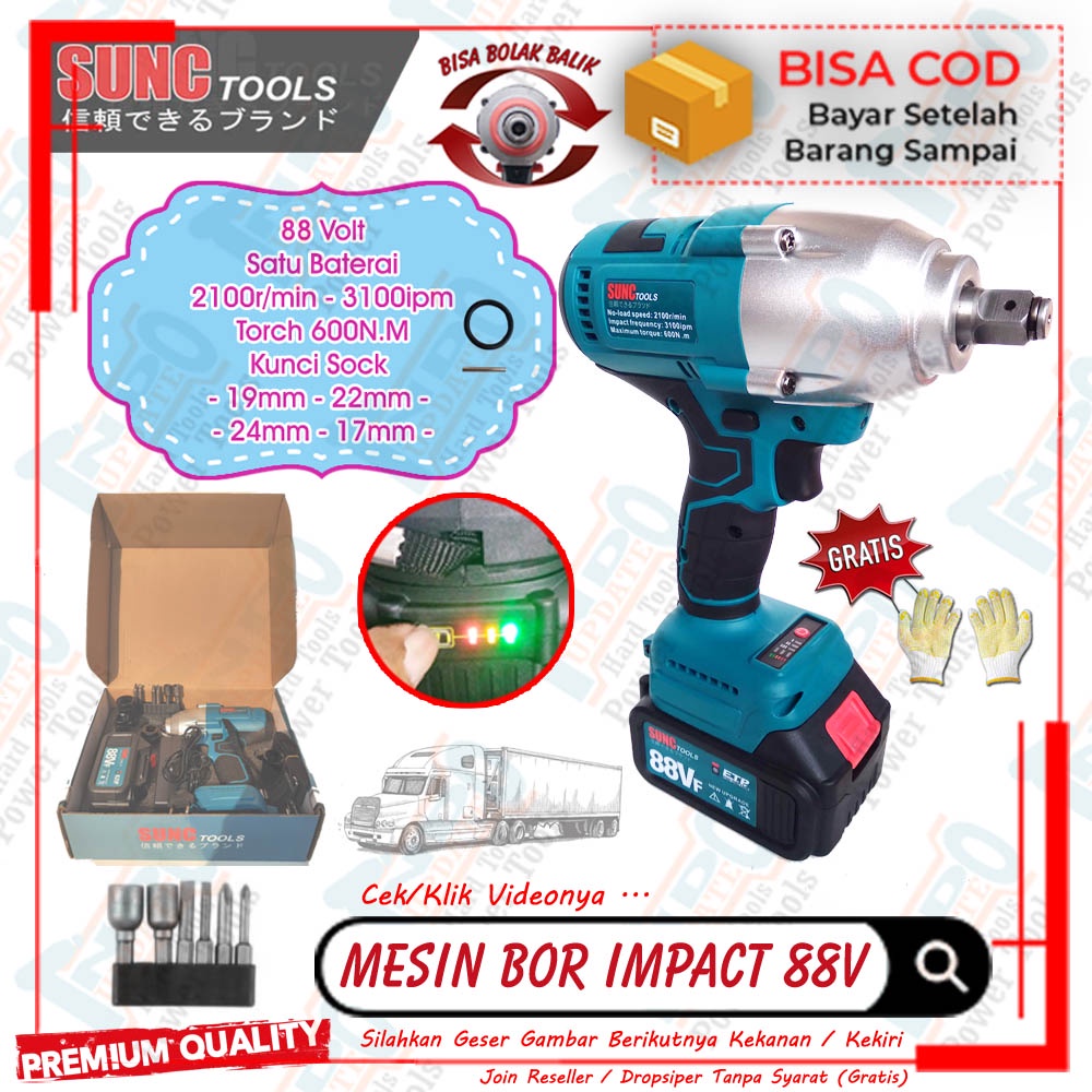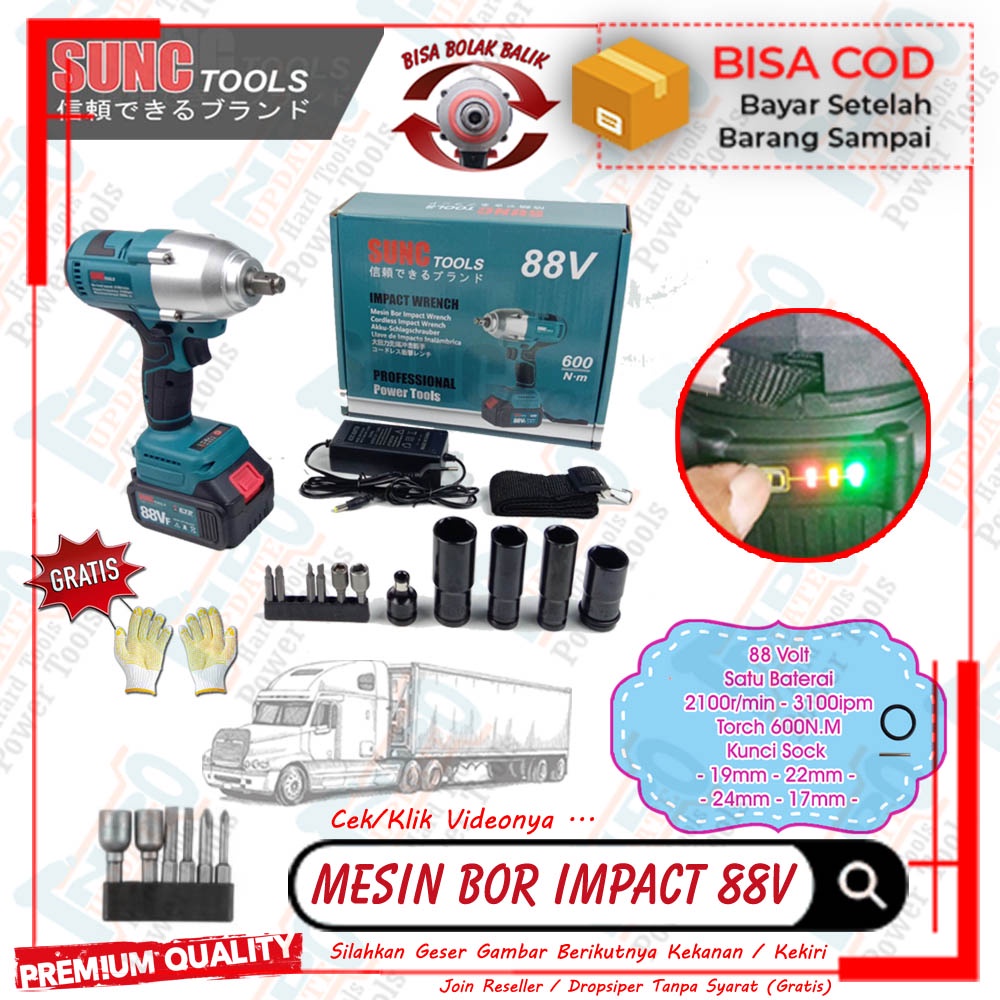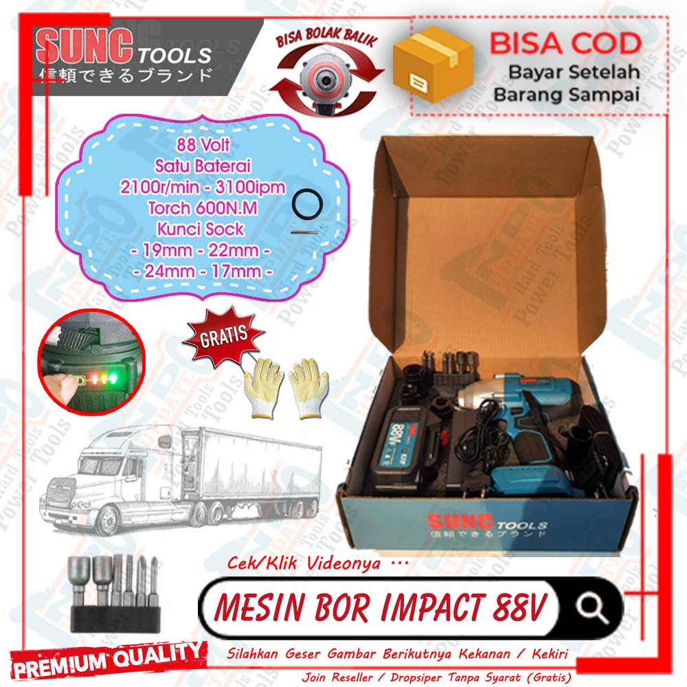 Mesin Bor Impact Wrench Sunc Tools 88v 1baterai Torsi 600nm Velg Ban Impek Inpek Kunci Sok Shock 16mm 22mm 24mm 17mm Torque Tinggi Reversible (Bisa bolak balik)