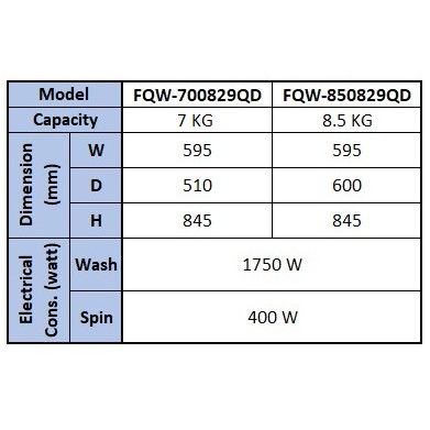 Mesin Cuci Front Loading AQUA 8,5Kg FQW850829 | Mesin Cuci Inverter | Mesin cuci Aqua| Garansi Resmi