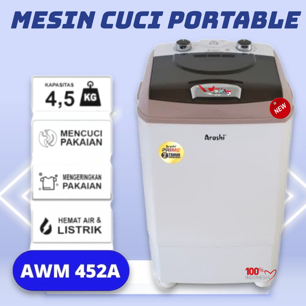 Mesin Cuci Portabel Arashi Laundry AWM 451A / Mesin Cuci Arashi 451A Prime / Mesin Cuci Arashi Prime