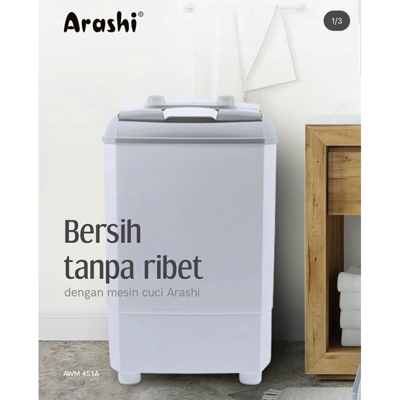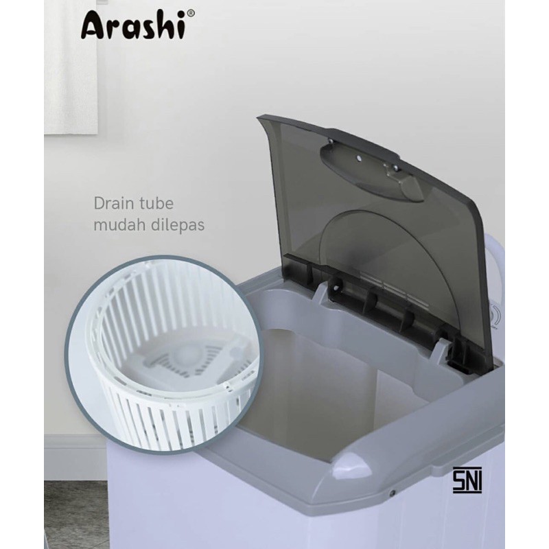 ARASHI Mesin Cuci Portable 4,5KG AWM 451A/452A | Bonus Tabung Pengering, Kapasitas Air 25 Liter, Daya 200 Watt, Design Compact, Timer, Tegangan 220V AC