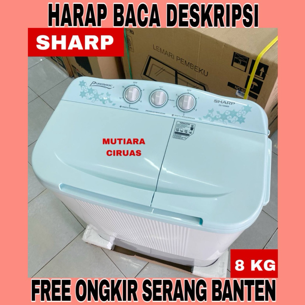 Mesin Cuci Sharp EST-80MW 8Kg / Mesin Cuci Sharp 2 Tabung 8 Kg (FREE ONGKIR SERANG BANTEN)