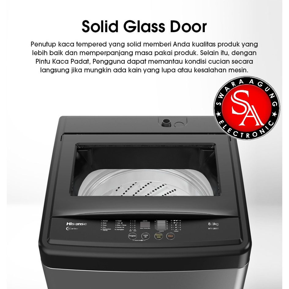 Mesin Cuci Top Loading 8 Kg Hisense Type : WTAG805T - Impeller Kincir Angin 3D - Low Watt ( MEDAN )