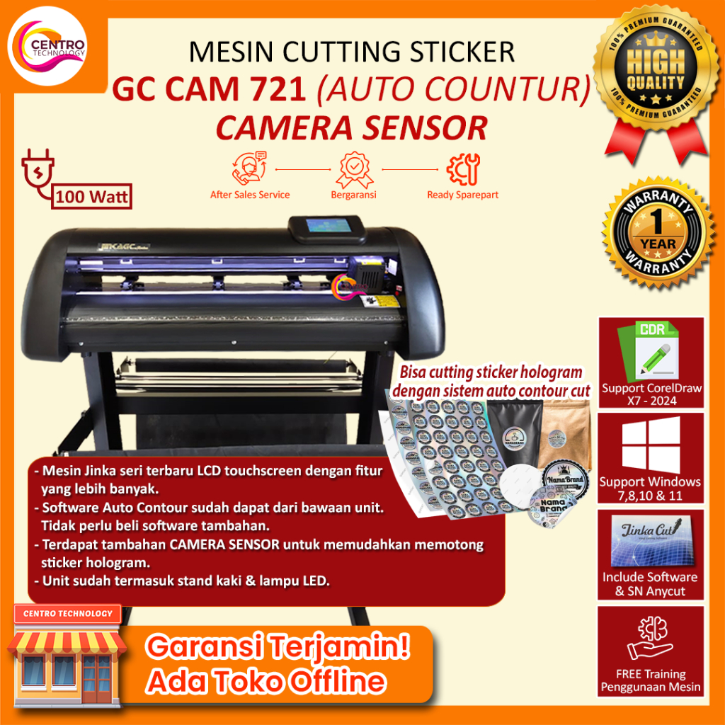 Mesin Cutting Sticker JINKA GC 721 - JINKA GC PRO LED 721 CAM TOUCH SCREEN (60 CM) | Auto Contour Cut Bahan Sticker Vinyl, Hologram, Chromo, Polyflex