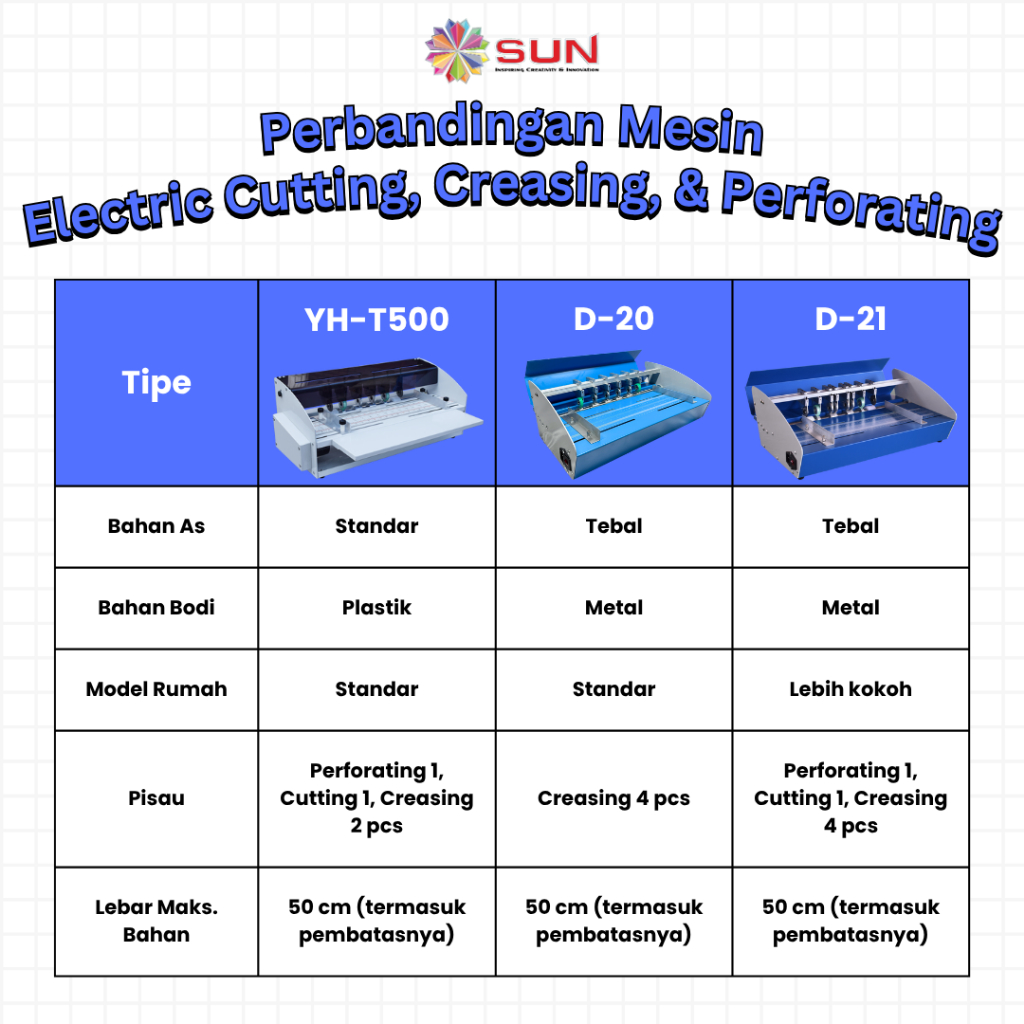 Mesin Electric Cutting, Creasing & Perforating D-19 / D-21( Mesin pemotong kertas, Pembuat Lipatan, Garis Putus Putus ) / Mesin Electric 4 in 1 Creasing D-20