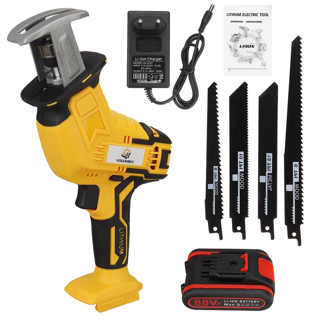 Mesin Gergaji Pemotong Pohon Kayu Pipa Besi Pvc Daging Mini Ringan Batrai Cas Listrik Chainsaw Xenon 81V