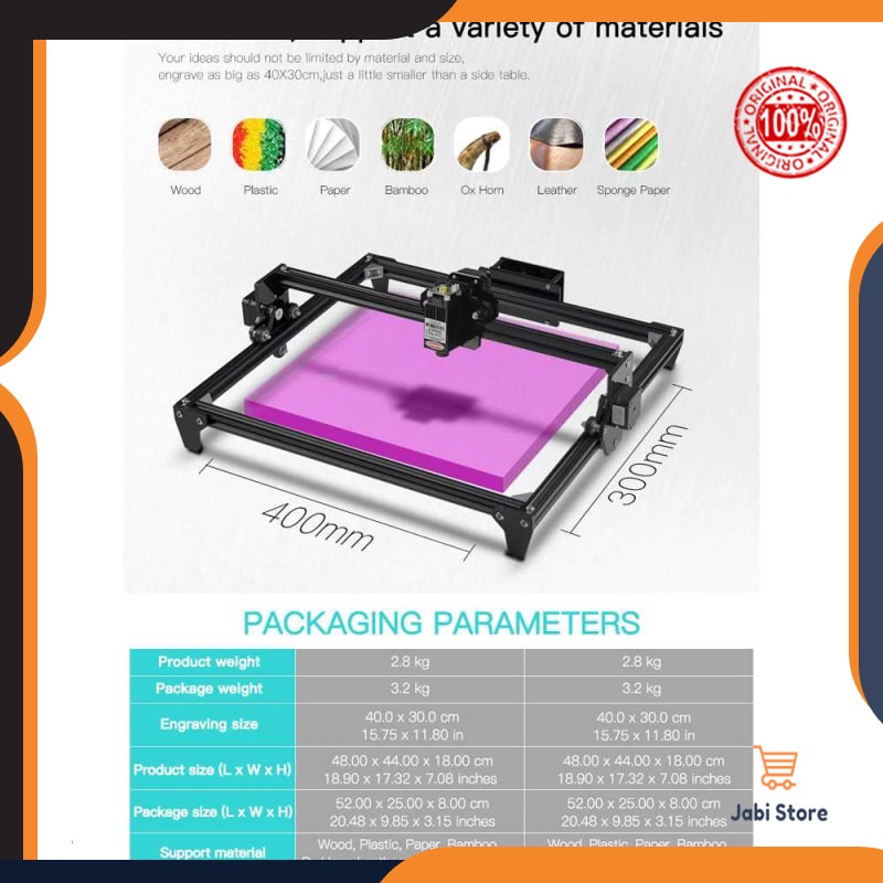 Mesin Grafir Engraver Printer CNC 3018 3D Ukir Laser Engraving Gravir Alat Mesin Akrilik Listrik Full Set Ez Elektrik Lengkap Murah Besar 2500mW - NEJE DK-8-KZ. Bisa Untuk Media Plastik, Kayu, Karet, Kertas, Bahan Kulit, Dll.