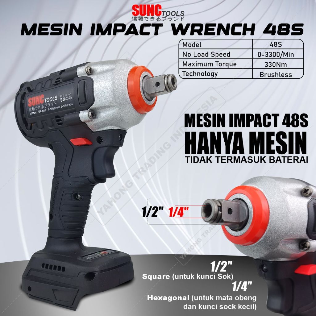 Mesin Impact Baterai Cordless Impact Wrench BRUSHLESS 48S SUNC TOOLS (HANYA MESIN)
