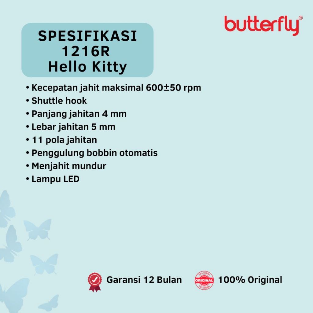 Mesin Jahit Portable BUTTERFLY 1216R HELLO KITTY