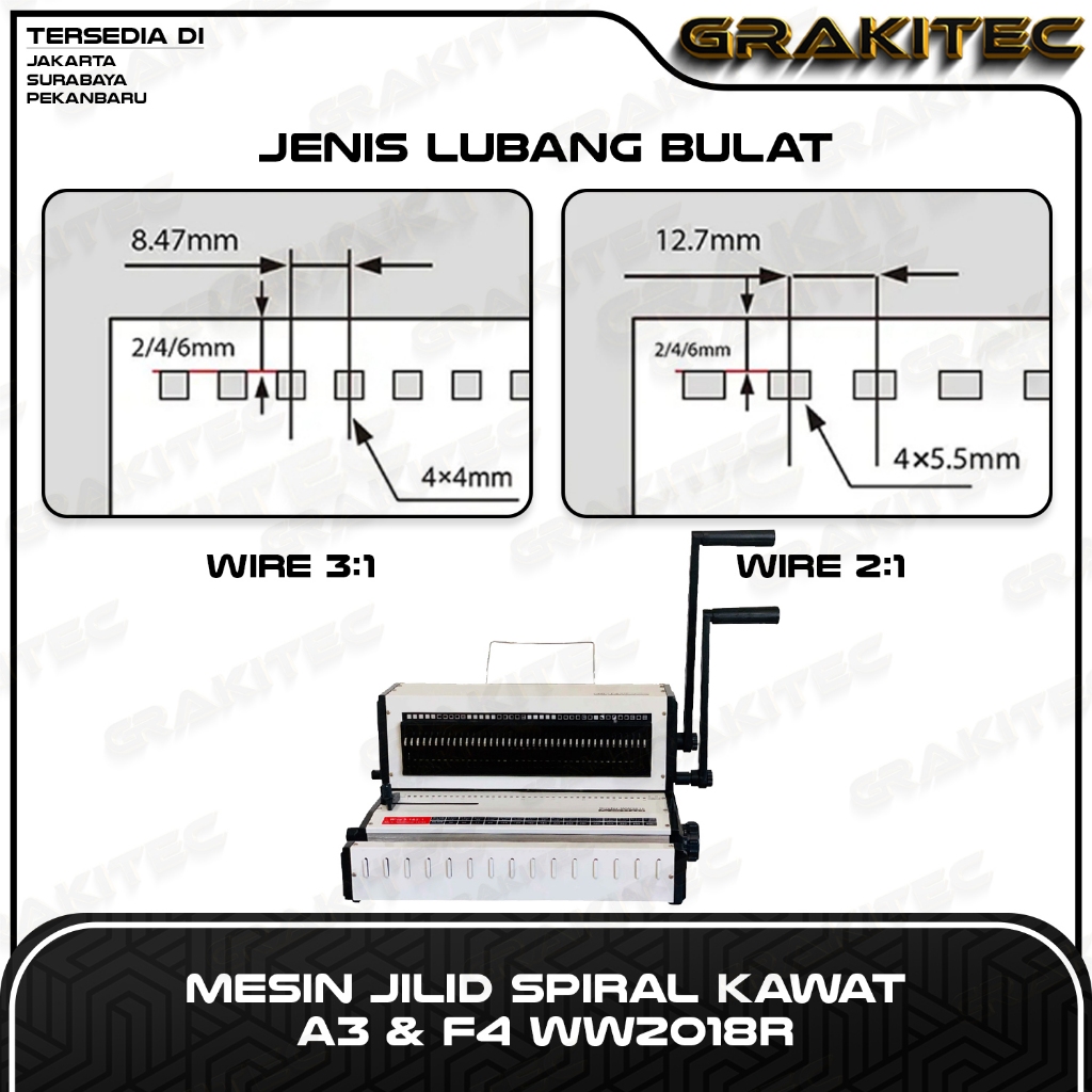 Mesin Jilid Spiral Kawat WW2018R 3:1 & 2:1 F4 & A3 Lubang Bulat Premium GRAKITEC Bisa Untuk Kalender Buku Dan Lain nya