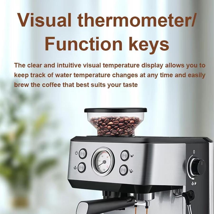 Mesin Kopi Espresso Coffee Maker Frothing Grinding 20 Bar 1400W SOKANY SK-04036 - Silver Black