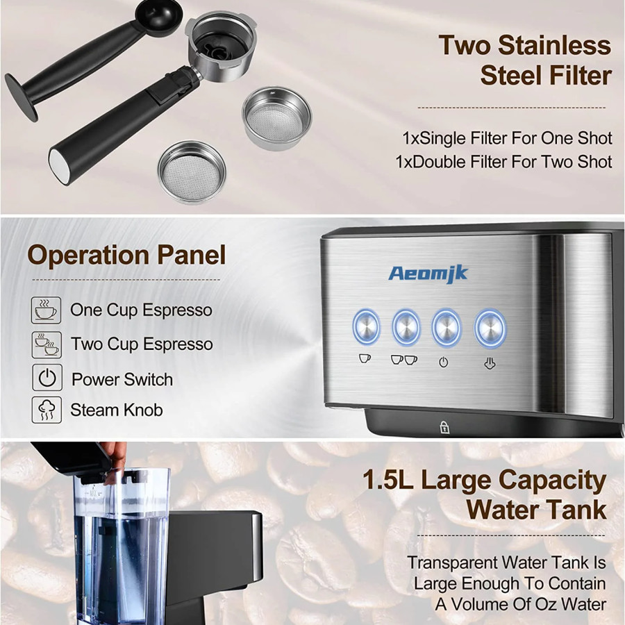Mesin Kopi Espresso Frothing 20 Bar 1050W 1.2L AEOMJK CM3010 PROMO