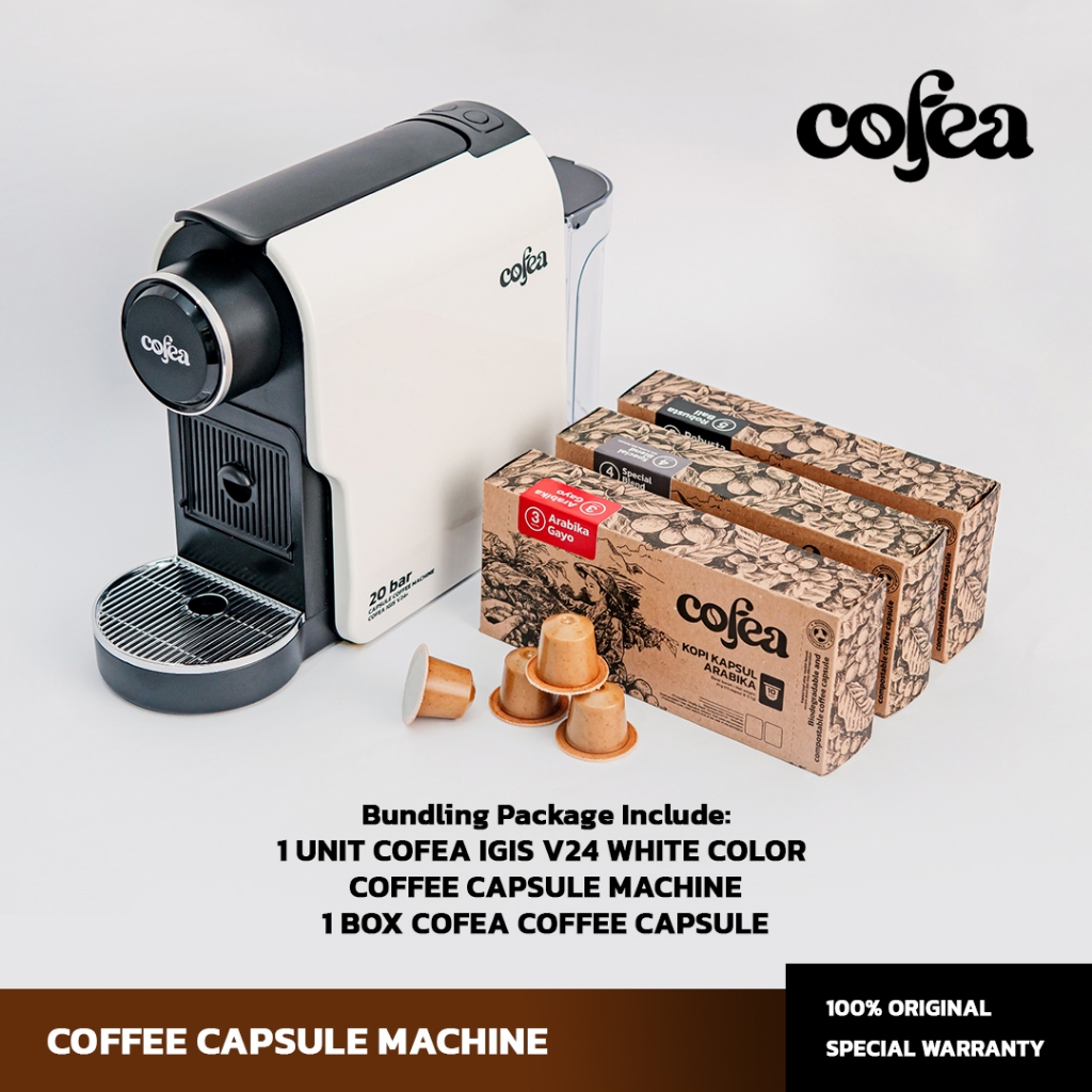 Mesin Kopi Kapsul COFEA IGIS V24+ WHITE Capsule Coffee Machine Free 1 Box Cofea Coffee Capsule