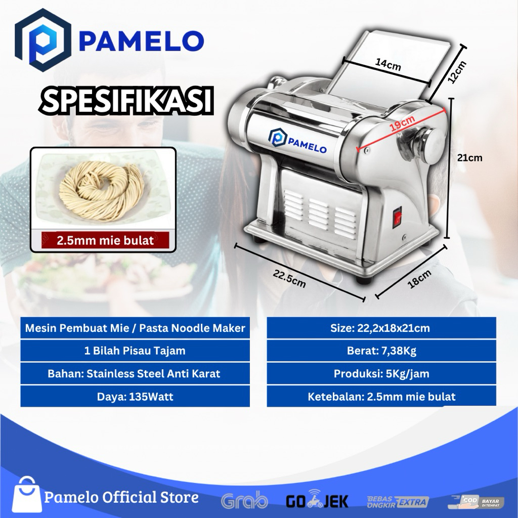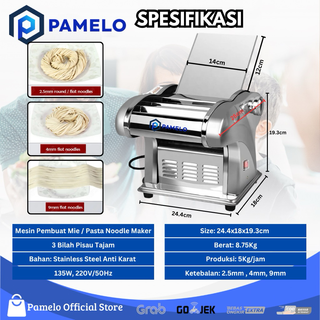 Mesin Mie Listrik Otomatis Mesin Giling Pastel, Kue Bawang, Ampia, Molen Noodle Maker Automatic Electric