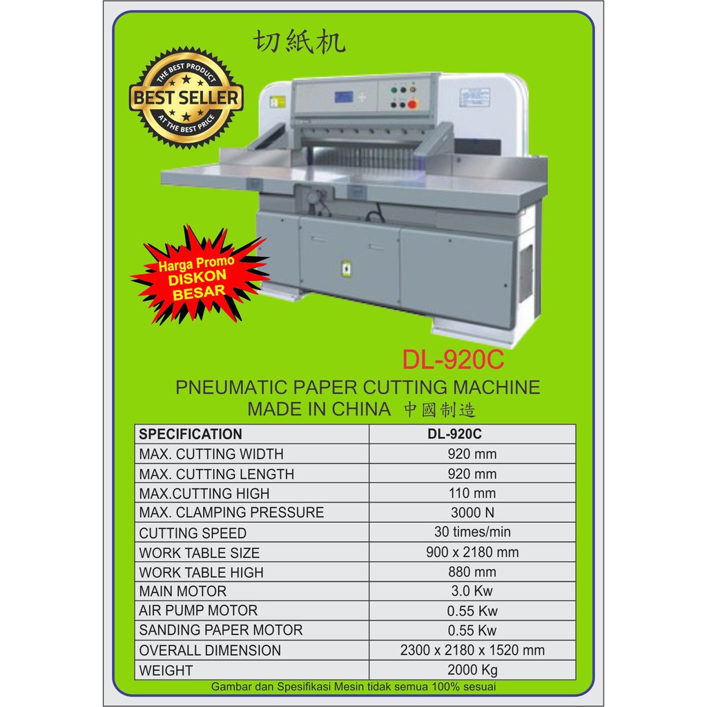 Mesin Pemotong Potong Kertas Pneumatic Paper Cutting Machine 92 x 11 cm 3 Kw - DL920C - AKS1963