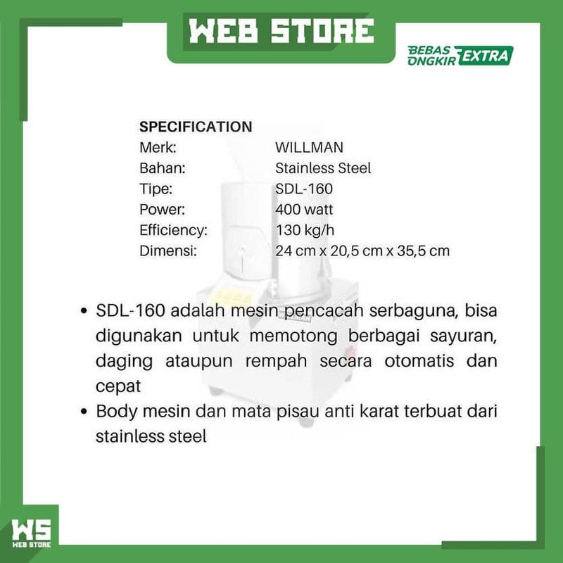 Mesin Pencacah Sayur Daging Stainless Electric Food Cutter WILLMAN SDL-160