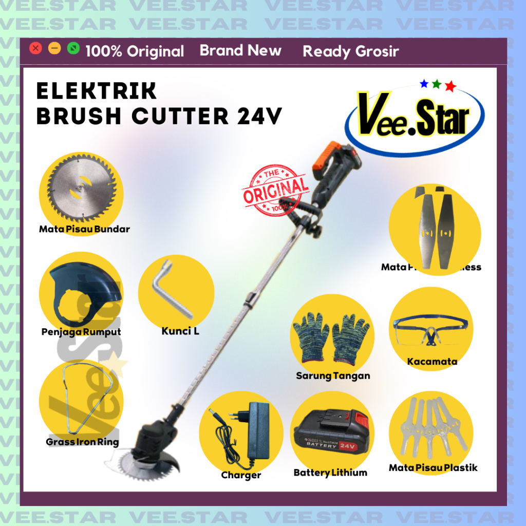 Mesin Potong Rumput Elektrik Portable 24V / electric brush cutter / cordless brush cutter/ Mesin Pemotong Rumput Beterai 24V