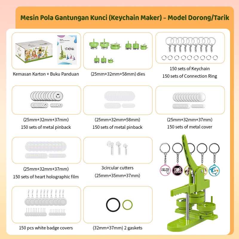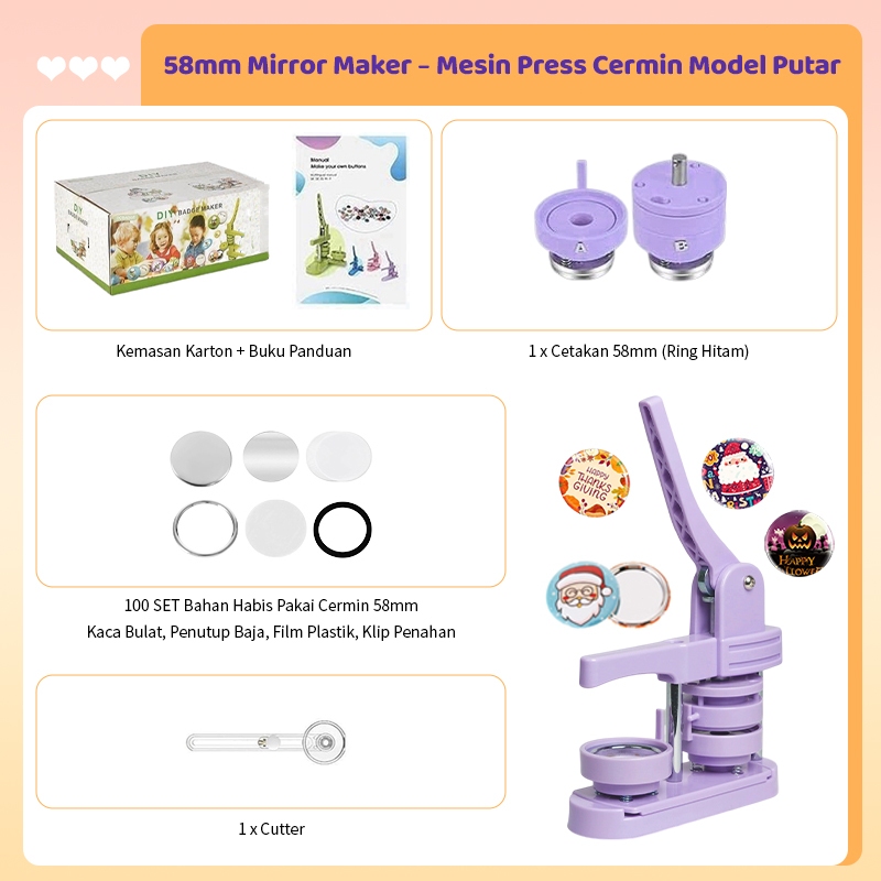 Mesin Press Lencana 3IN1 25+32+58mm Rotating | Alat Pembuat Bros Peniti DIY Usaha Rumahan + 300Pcs Bahan & Cetakan Lengkap
