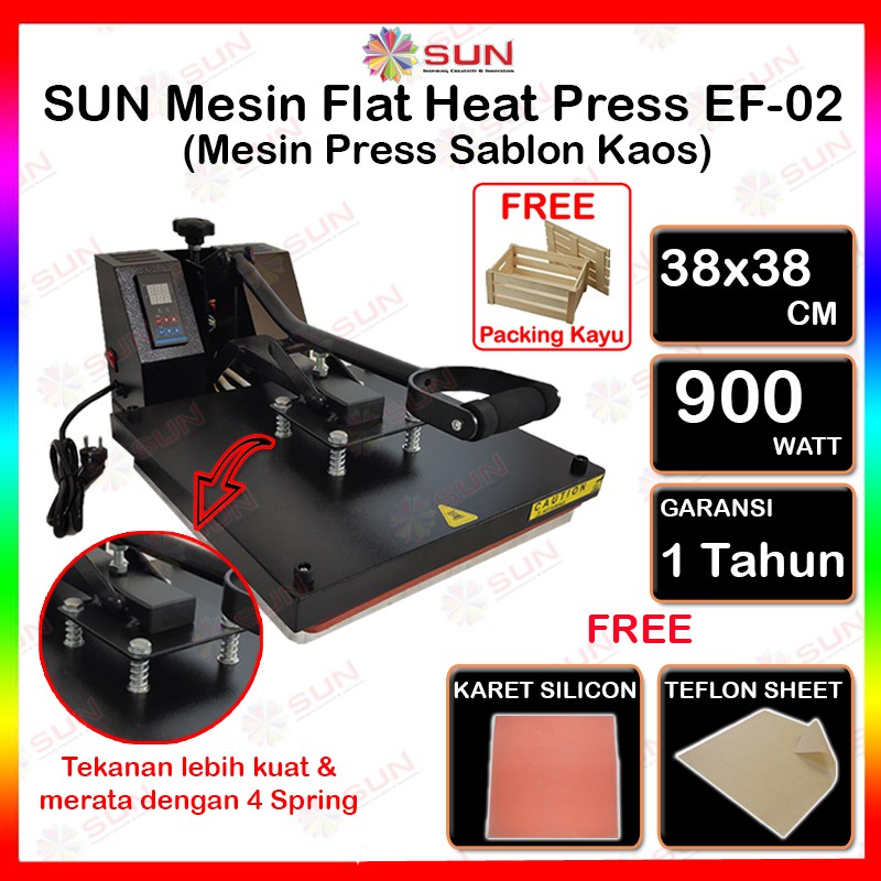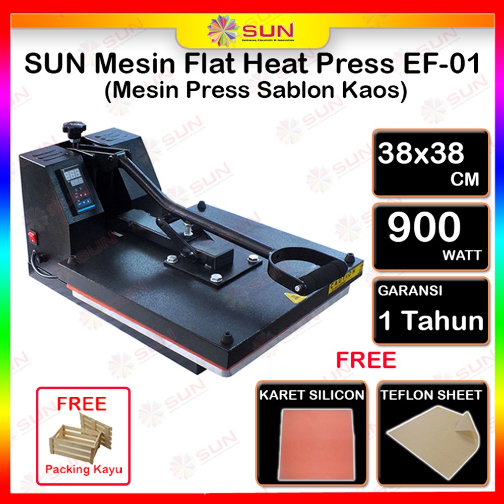 Mesin Press Sablon Kaos SUN 38x38 HIGH PRESSURE ( ALAS ALUMINIUM + KARET SILIKON ASLI ) EF-01 / EF-02 untuk Kaos, Bag, Puzzle, Plat Aluminium, Bantal ( DTG, DTF, Polyflex, Sublime, Transfer Paper, Platisol, Rubber )