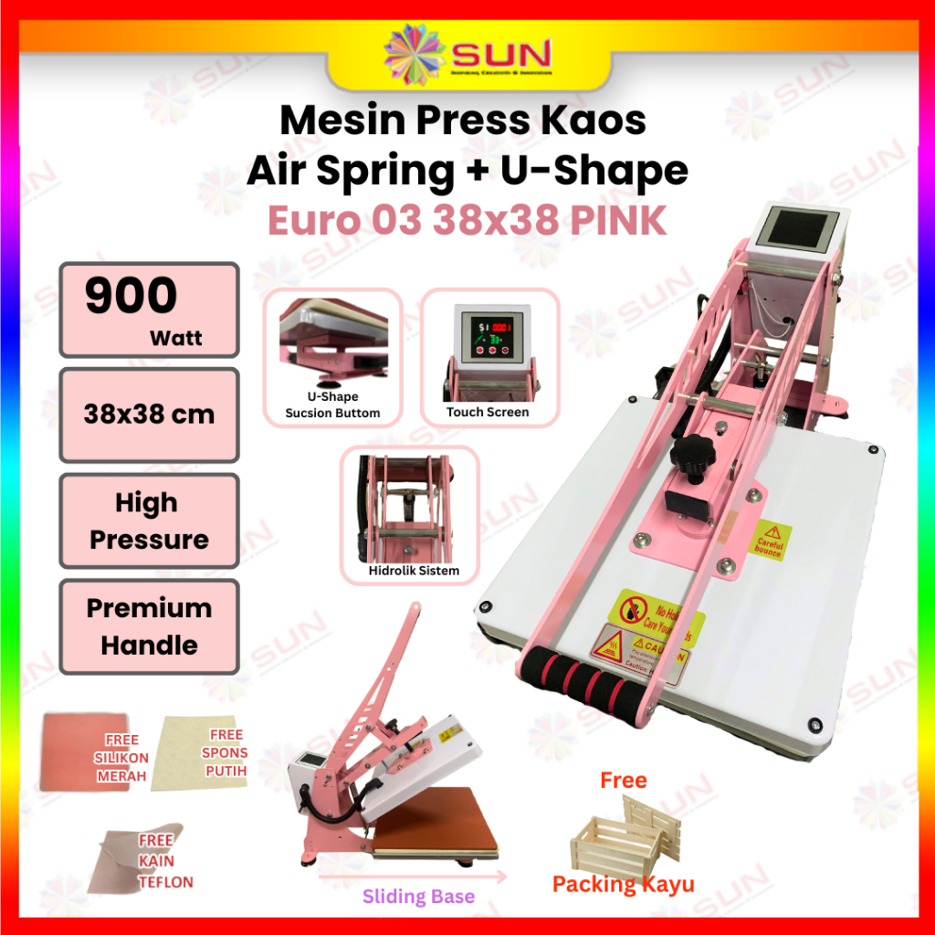 Mesin Press Sablon Kaos SUN Sliding SUPER HIGH PRESSURE Euro - 02 / 03 - 23x30 / 38x38 / 40x60 Kaos, Bag, Puzzle, Plat Aluminium, Bantal ( DTG, DTF, Polyflex, Sublime, Transfer Paper, Platisol, Rubber )
