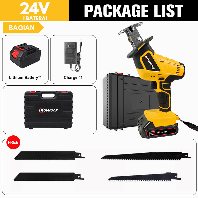 Mesin Reciprocating Saw Cordless Chainsaw Mesin Gergaji Besi Kayu Portable Gergaji Rantai Portable Handheld Saw with Rechargeable Battery for Wood Cutting