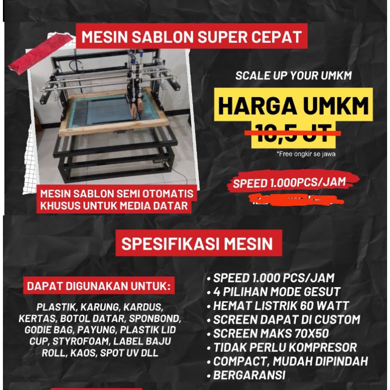 Mesin Sablon Semi Otomatis Super Cepat