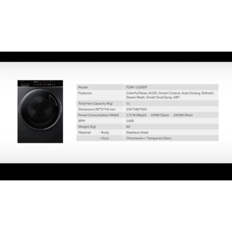 Mesin cuci AQUA FQW-1160DF 11KG DIRECT DRIVE GARANSI SEUMUR HIDUP
