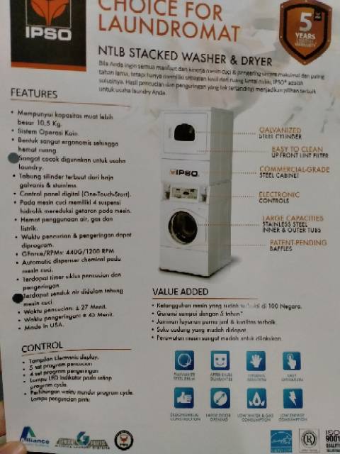 Mesin cuci dan pengering stacked IPSO