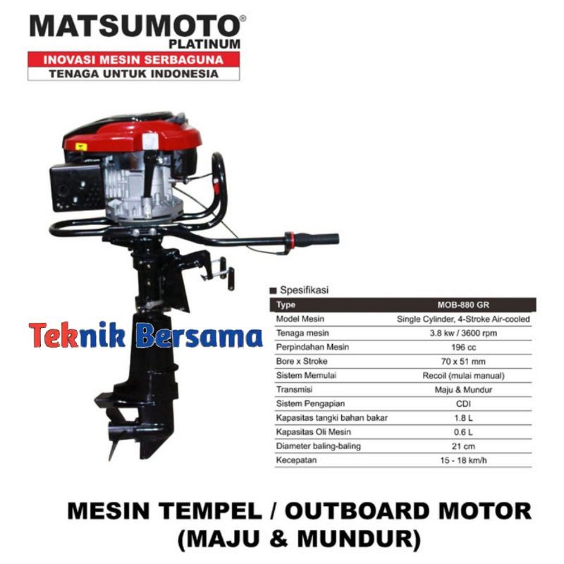 Mesin tempel outboard matsumoto MOB 880GR 4 tak maju mundur