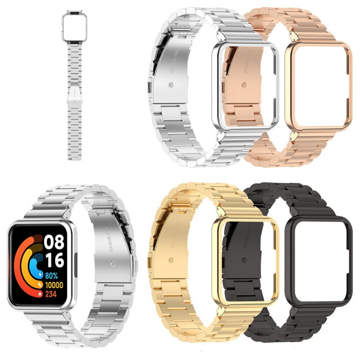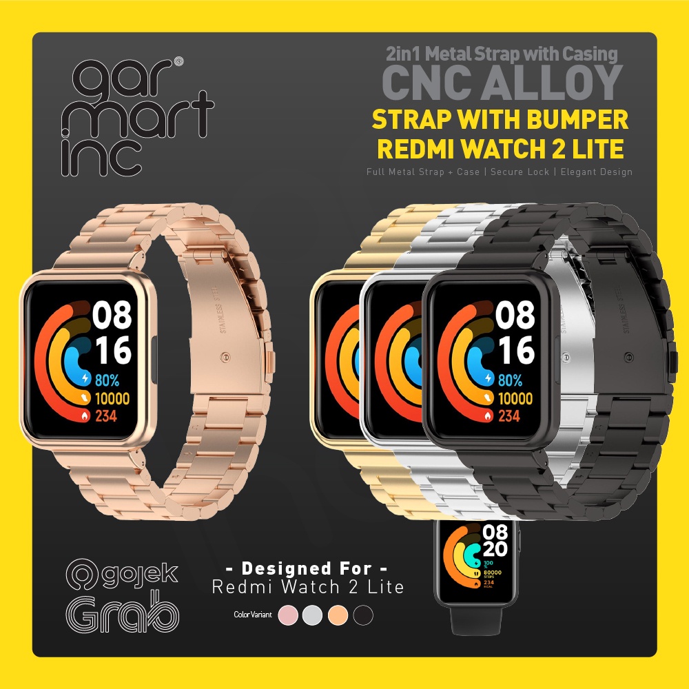Metal 2in1 Stainless Strap with Bumper Frame Case for Xiaomi Redmi Watch 2 Lite (Tali Jam Smartwatch dengan Cover Casing)