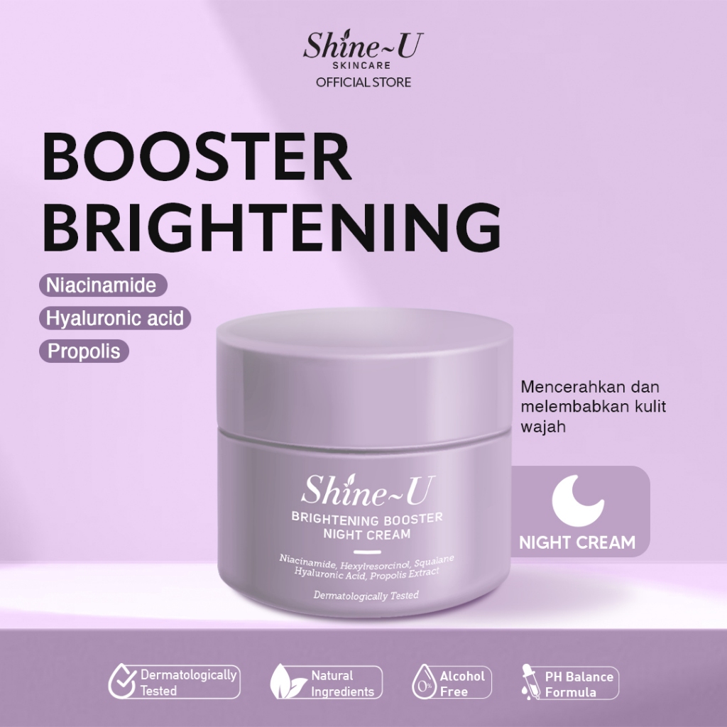 Shine-U Brightening Booster Night Cream 20gr - Perawatan Krim Malam untuk Mempercepat Kulit Halus dan Cerah Alami