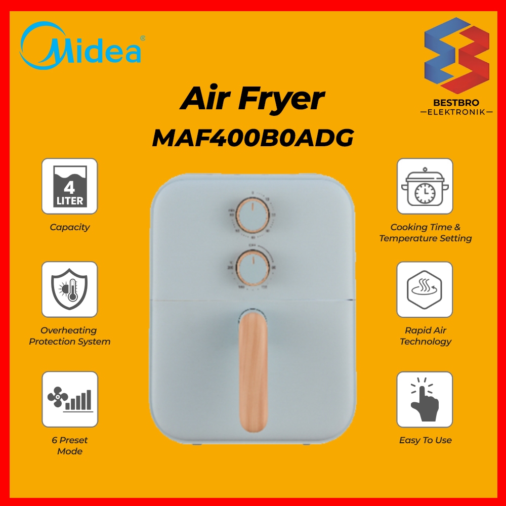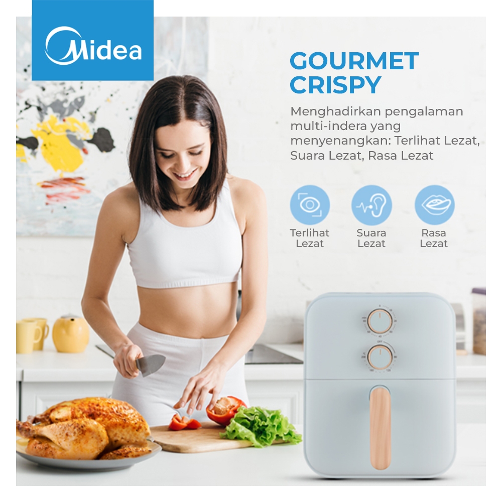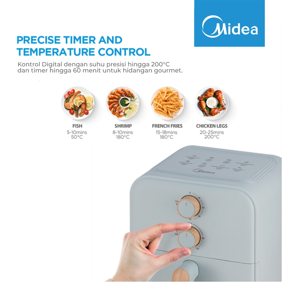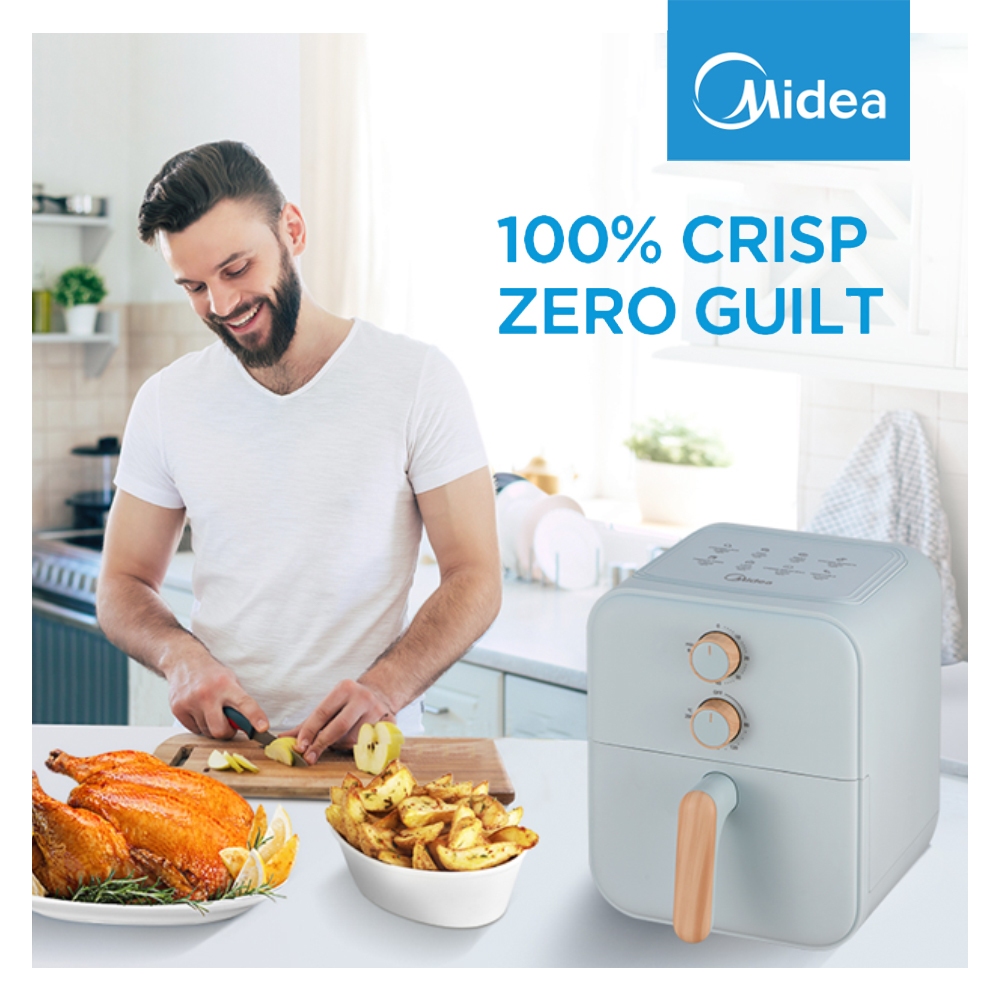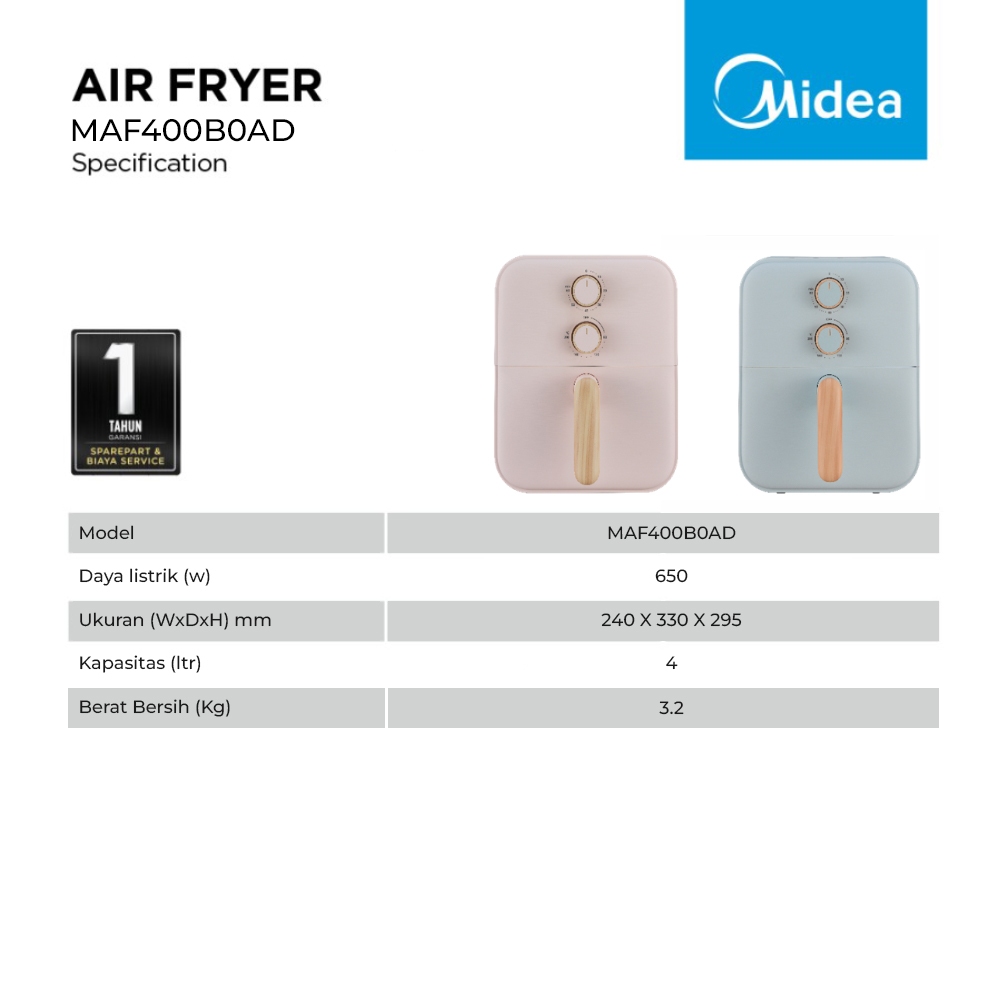 Midea Air Fryer 4L 650W Low Watt MAF400B0ADG Penggorengan Tanpa Minyak Knob Design Blue