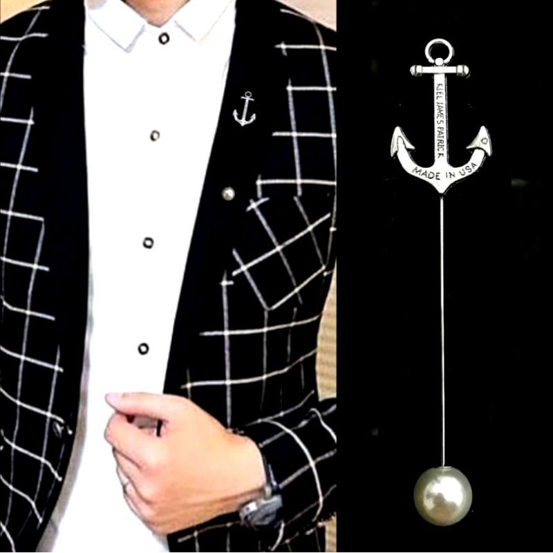 Metal Silver Anchor Pearl Army Lapel Pin Bros Jas Kameja Tuxedo Mens Pria