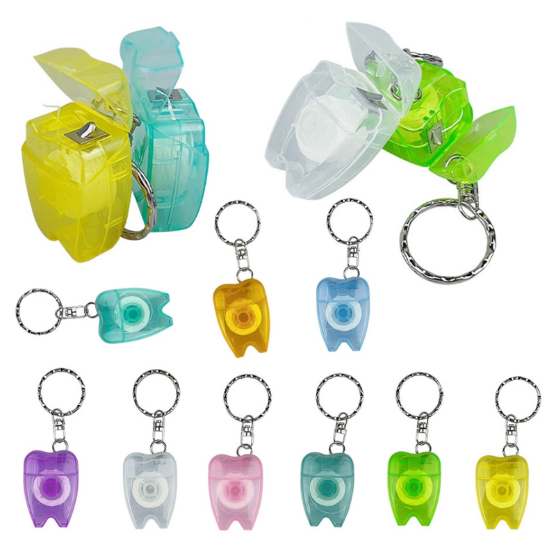 30pcs/bag Gantungan kunci dental floss roll bentuk gigi benang gigi mini gantungan tas pembersih sela celah gigi