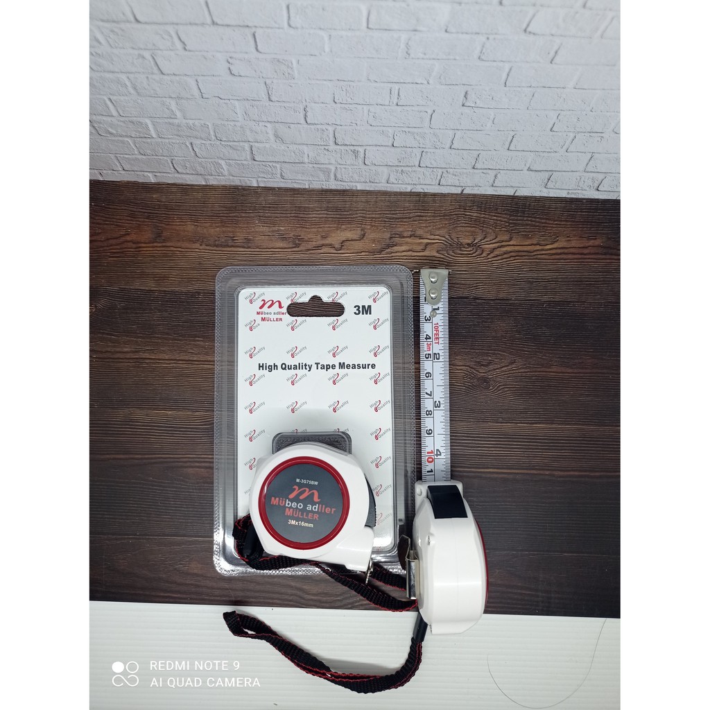 Meteran 3 meter,Rollmeter 3 meter Muller (Hitam/Putih)