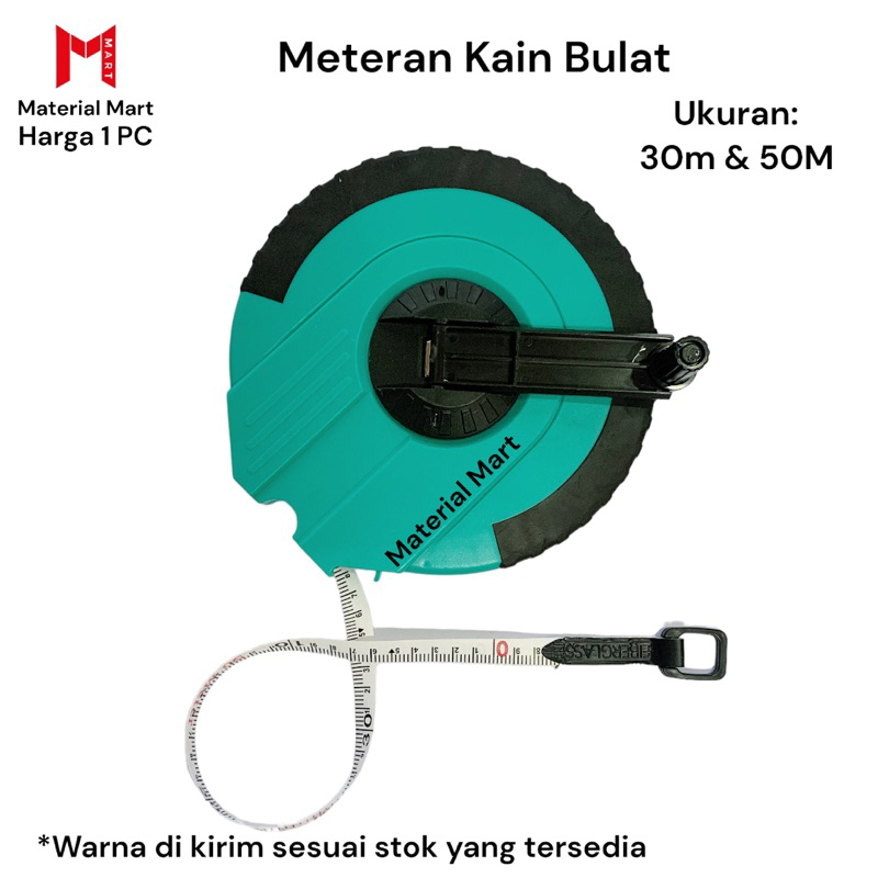 Meteran Kain 30m | Meteran Gulung Bulat 50 Meter | Alat Ukur Roll | Pengukur Dimensi Bulat 30 Meter | 50M | Material Mart