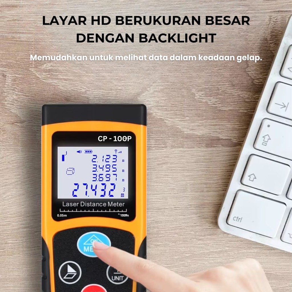 Meteran Laser 100m Alat Ukur Jarak Multifungsi Penggaris Elektronik Distance Meter LCD CP-100
