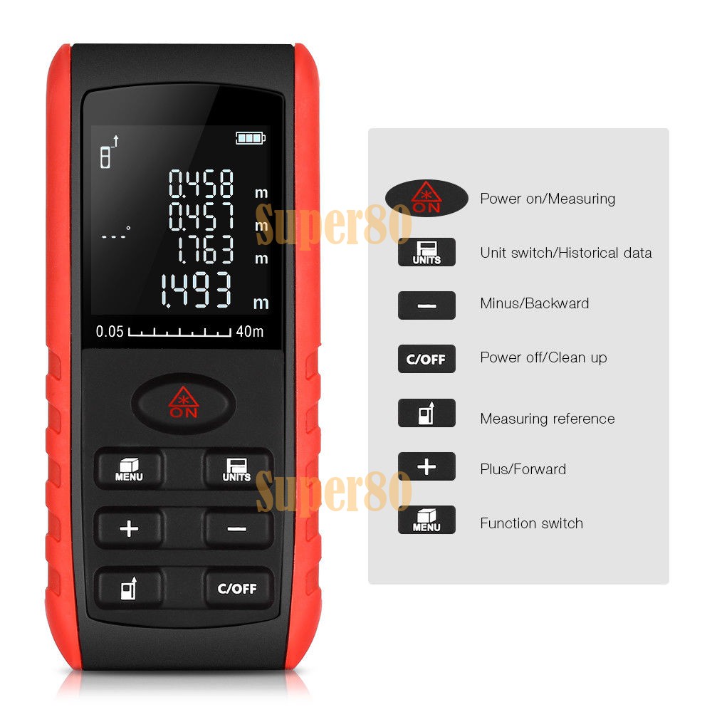 Meteran Laser 40m 60m 80m 100m Distance Meter Digital Rangefinder Alat Ukur Pengukur Jarak