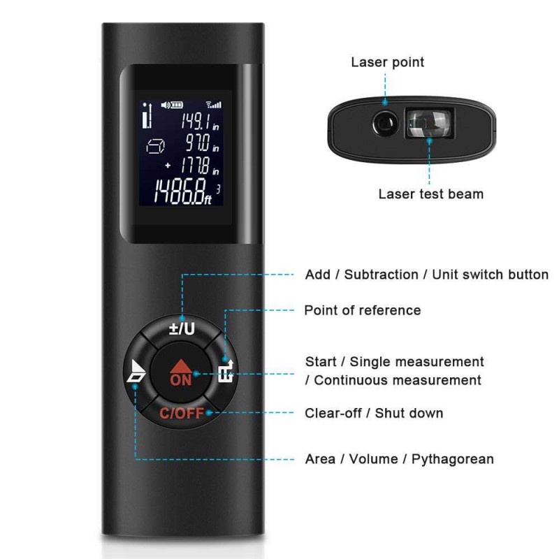 Meteran Laser USB Rechargeable 200mAh Pengukur Jarak 40M LCD Backlight