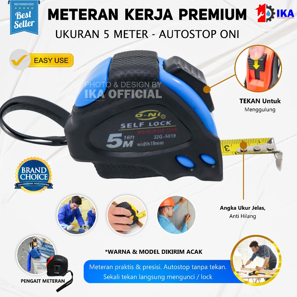 Meteran Tangan 5 Meter Meteran Karet Otomatis Self Lock 5m ONI SELFLOCK / otomatis mengunci sendiri Meteran 5 Meter Tukang Bangunan Roll / Meteran Karet / Meteran Murah 5M /Meteran 5 M Anti Slip Self Lock Dengan Pengunci Otomatis / Measure Tape