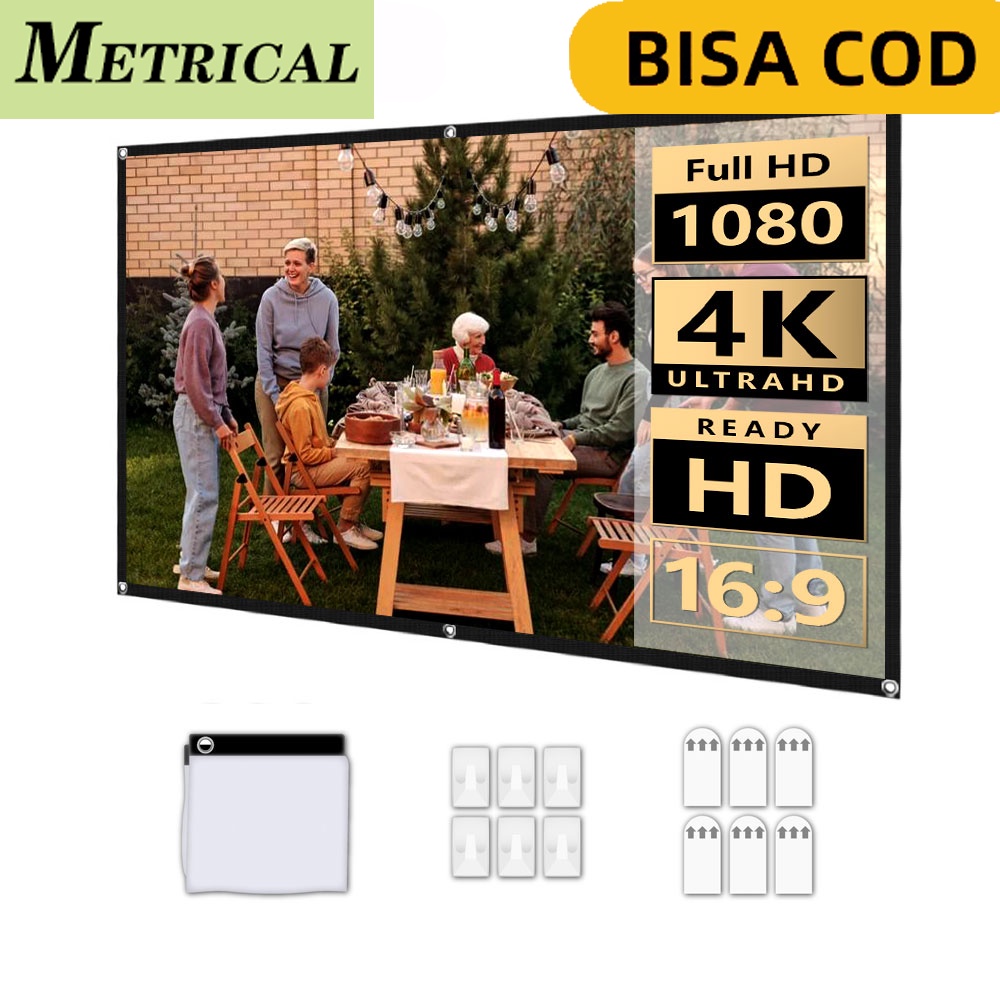 Metrical Layar Proyektor Portabel Tirai Sederhana Layar Proyeksi 60 Inci Anti-Cahaya untuk Proyektor Rumah Kantor