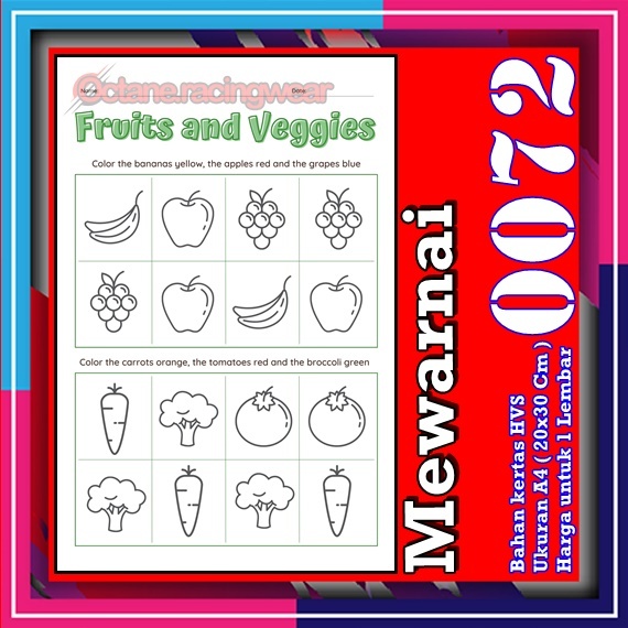 Mewarnai Gambar Harga satuan ukuran A4 / A5 Murah karakter bunga alam hewan dino kuda buah Buku No 4